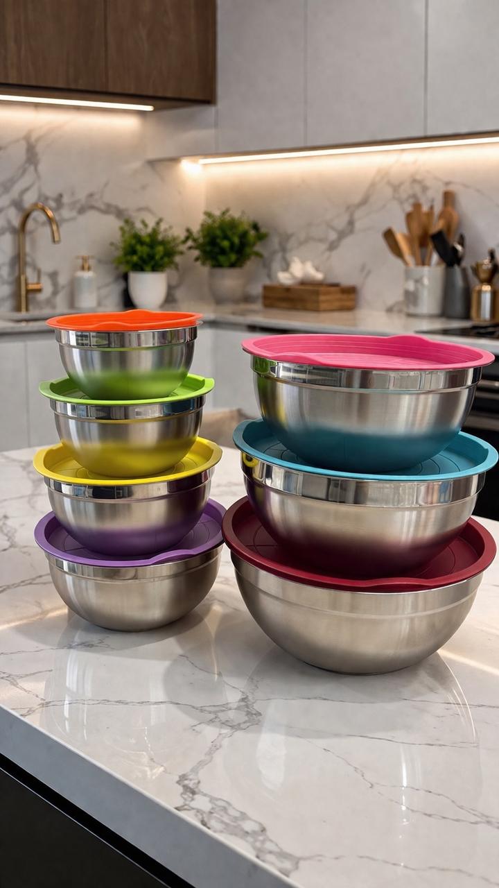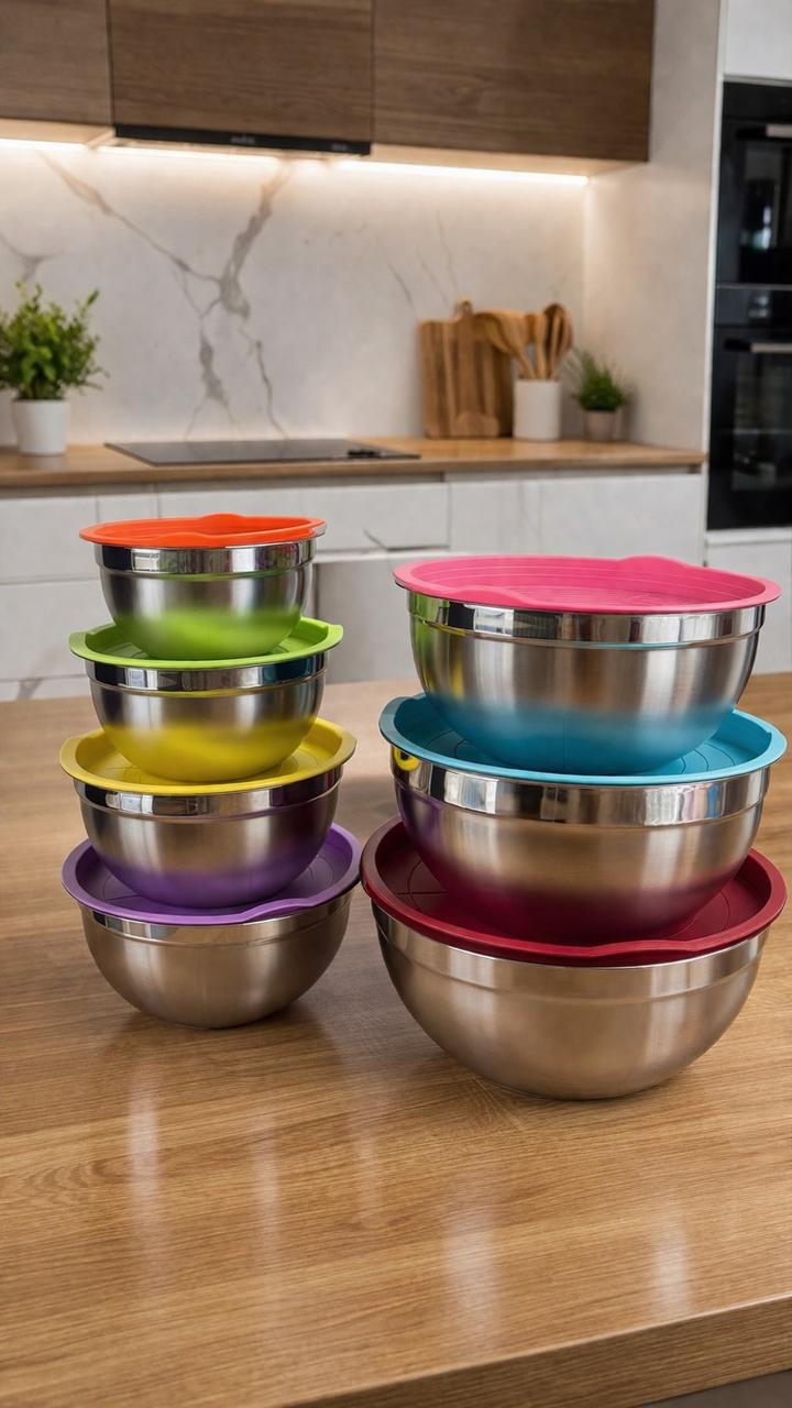 Удобство в использовании - разные размеры подходят для любых нужд • Экономия места - миски легко складываются одна в другую • Многофункциональность - подходят для салатов, теста, закусок и хранения продуктов • Прочность и долговечность - устойчивы к износу при регулярном использовании • Лёгкий уход - большинство мисок легко мыть вручную или в посудомоечной машине Артикул: 546524