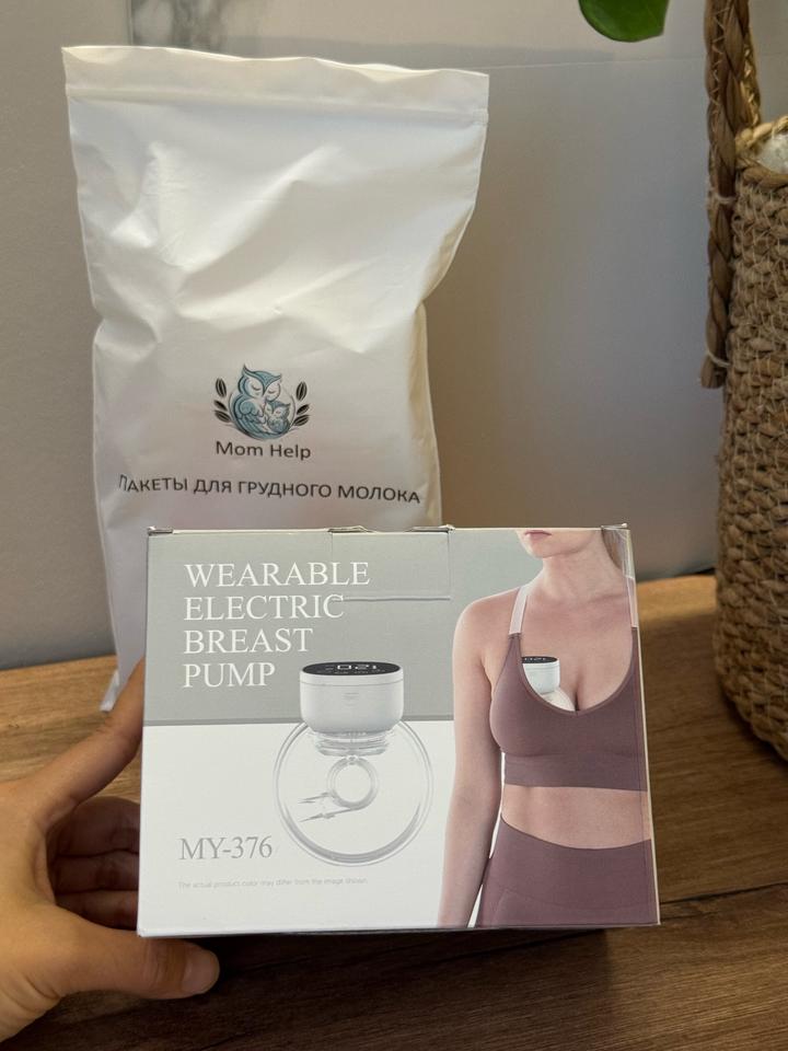 Электронный молокоотсос и пакетики для хранения грудного молока-
