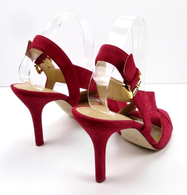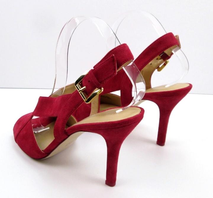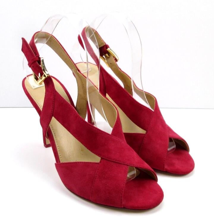 Босоножки новые, на каблуках ходить тяжело. Цвет ближе в бургунди. На фото выглядит чуть ярче. На ногах сидит шикарно. Артикул: 546709