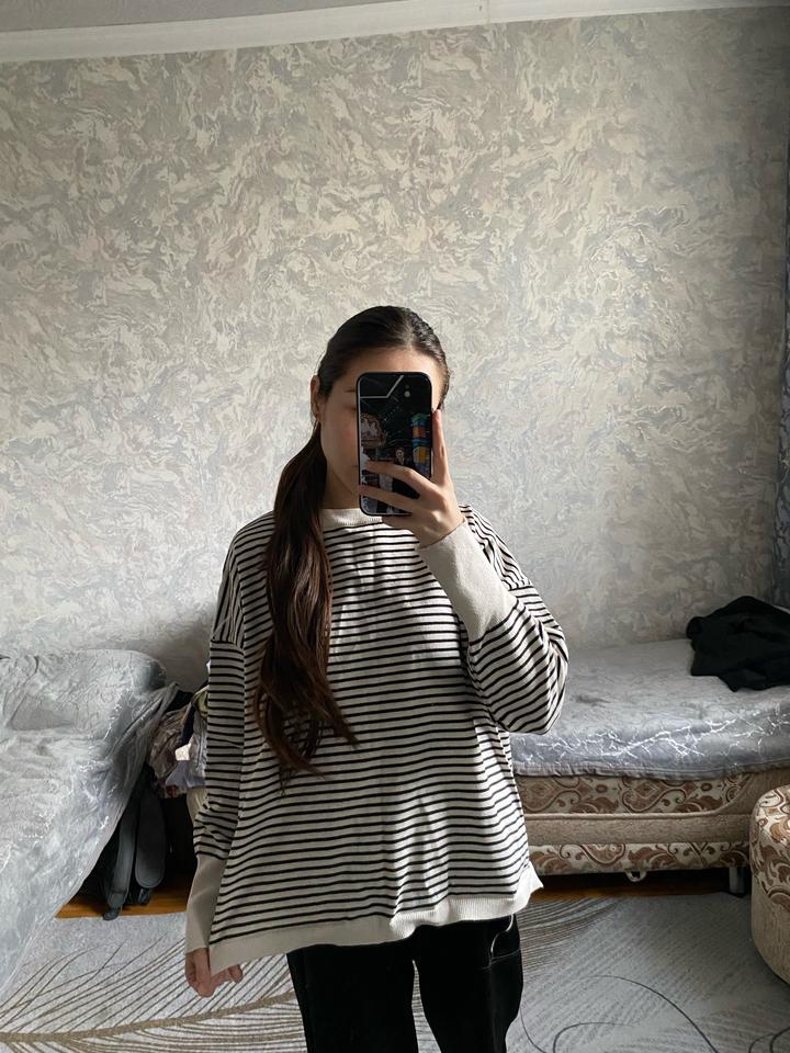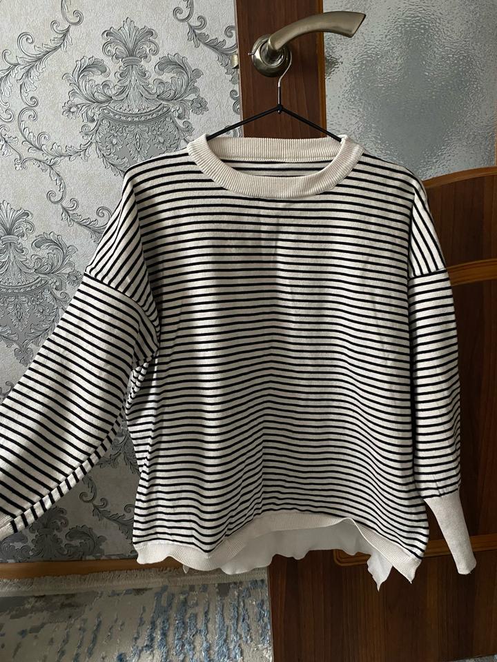 Кофта в полоску идет немного оверсайз, есть немного пятна но они менее видны Артикул: 546810