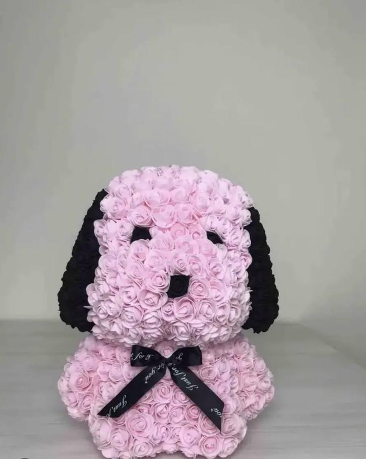 Розовая собачка из розочек - удивительная и очаровательная игрушка, получить которую в подарок будет счастливый как взрослый, так и ребенок. Для его изготовления используется особый материал - фоамиран, который отличается особой мягкостью, благодаря чему собачка из роз порадует тем, насколько она приятна на ощупь. Артикул: 546867