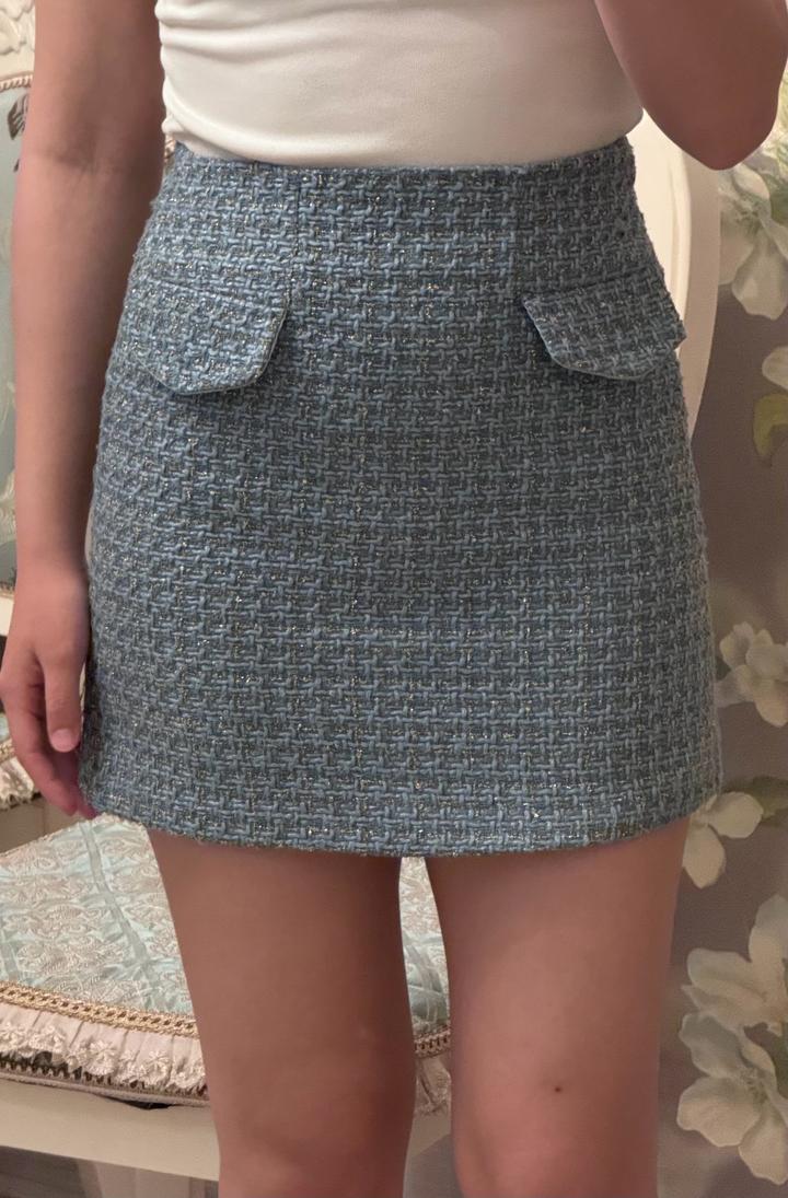 короткая твидовая юбка, цвет: голубой, подходит для маленьких и худых девушек, размер xs, под юбкой нету шортиков Артикул: 546949