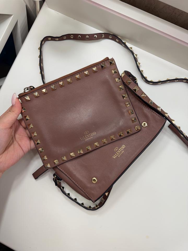 Сумка-трансформер, отстёгивается еще один маленький клатч, можно носить отдельно. Цвет бежево-пыльно-розовый. Носили бережно, единственное от того, что лежала в шкафу, кожа немного прижалась, но никаких царапин нет. Можно расправить, вставив вовнутрь что-то. Коробки нет, только пыльник, покупали еще в далеком 2015. Длина - 19 см, ширина - 5,5 см, высота - 14,5 см. Ремешок- 61 см, регулируется. Артикул: 546962