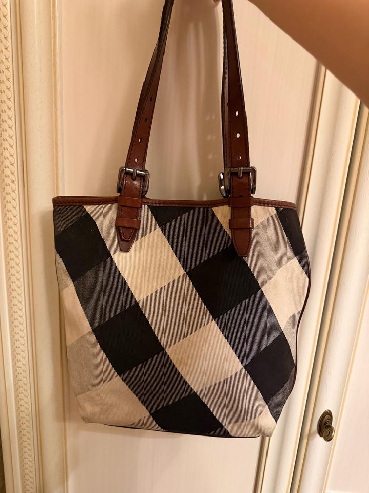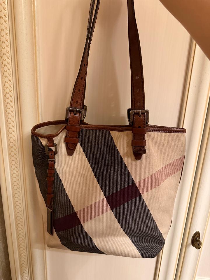 Сумка-тоут от Burberry. Винтаж. Брали в 2000-х годах. Есть пару пятен, но ремешки хорошие, без дырок и царапин. Длина 24 см Ширина 9 см Высота 33 см Ремешок 30 см, регулируется. Артикул: 547131