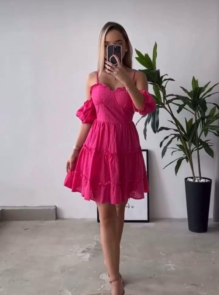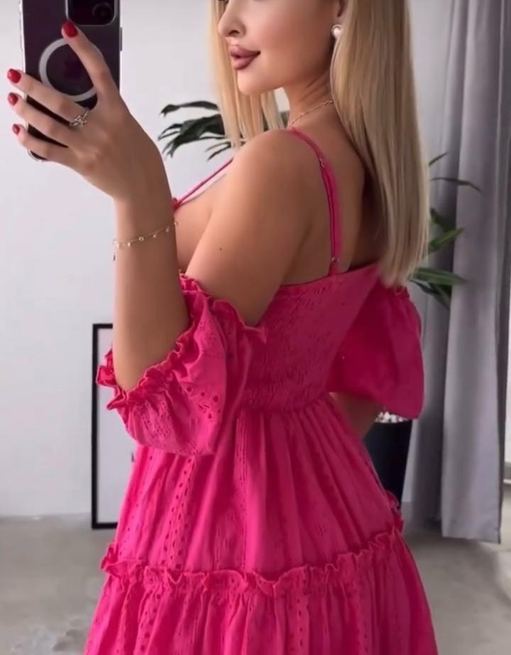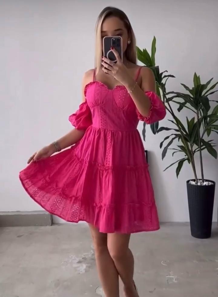 Ярко-розовое платье — новое, с этикетками, не носилось. В наличии два розовых платья, размер S–M, также есть такое же в бежевом цвете. Артикул: 547152