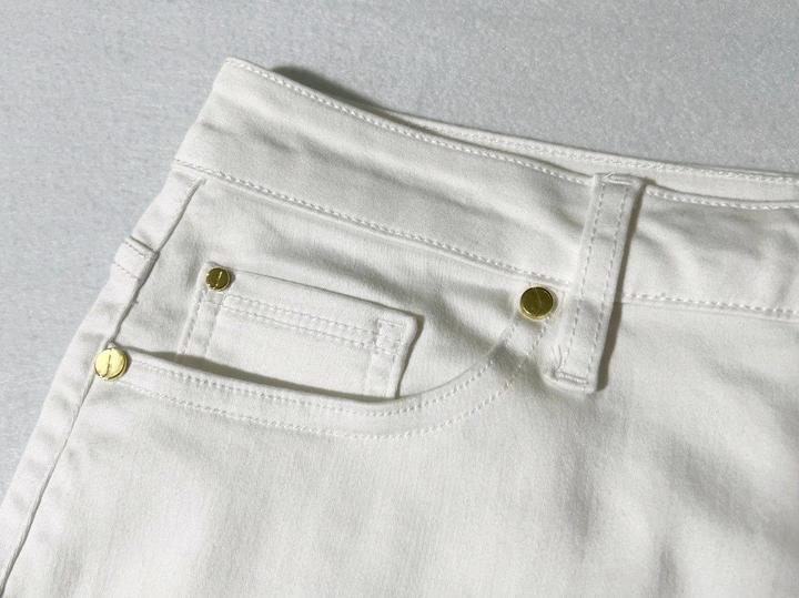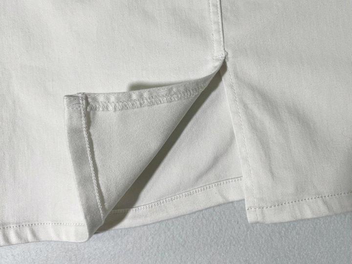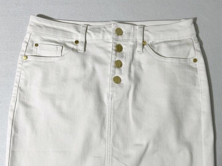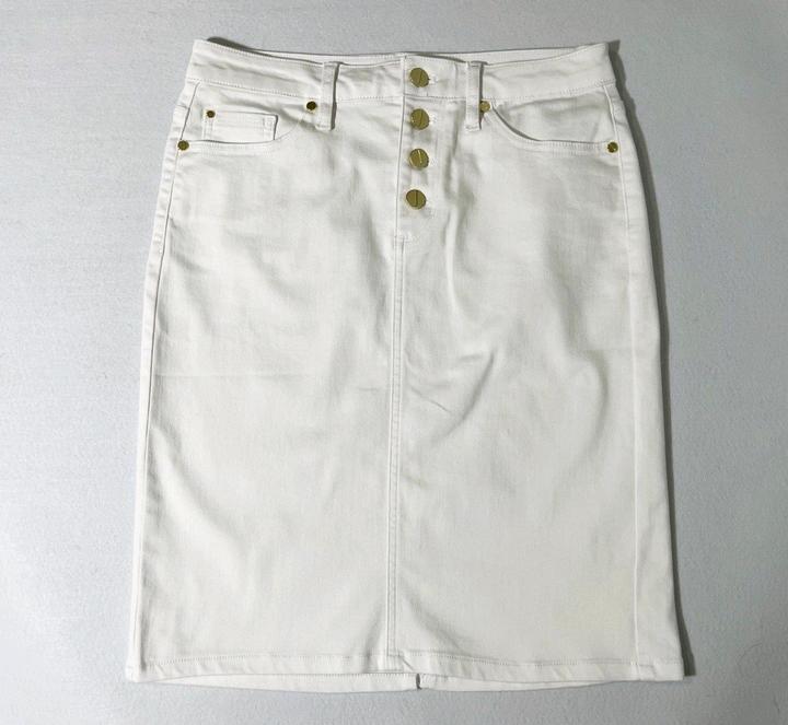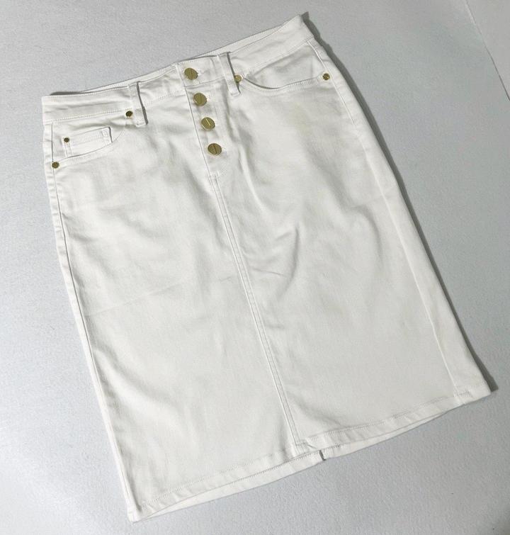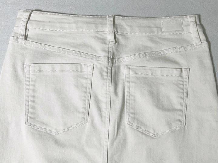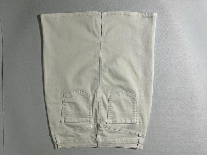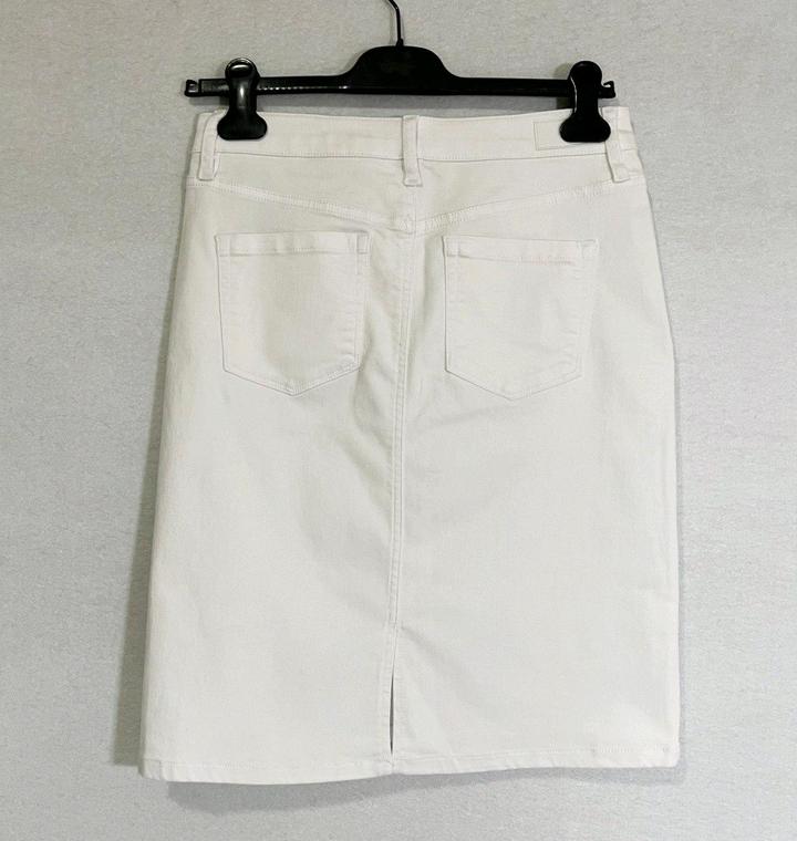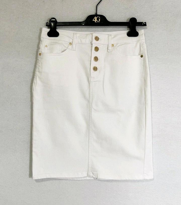 Новая (с нюансом) белая джинсовая юбка от Jones New York. Нюанс - маленькая едва заметная зацепка на ткани - см последнее Фото. Также прислали с надорванной биркой - см фото. Юбка никогда не одевалась, но 1 раз простирала в машинке. Размер указан US4, но боьлешемерит, поэтому подойдёт на M 46. Талия семьддесят четыре см, длина 5семмь см. Силуэт прямой, не зауженный книзу. Артикул: 547155