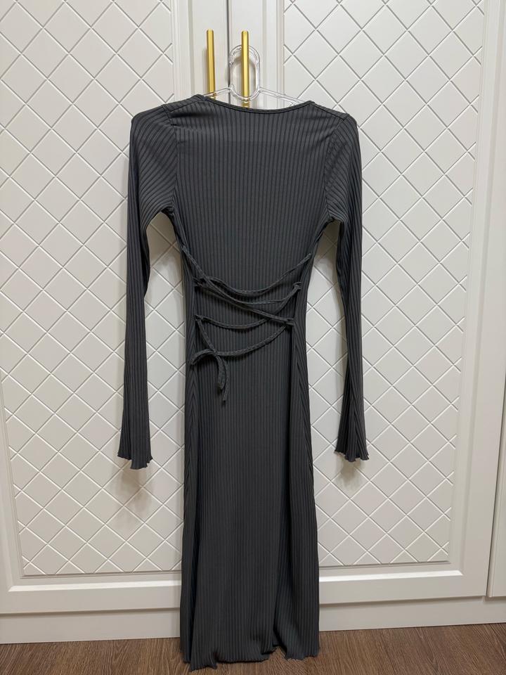 Платье лапша цвета мокрый асфальт, с шнуровкой на спине, красиво облегает фигуру, подчеркиввет талию. хорошо тянется, можно до размера L Артикул: 547156