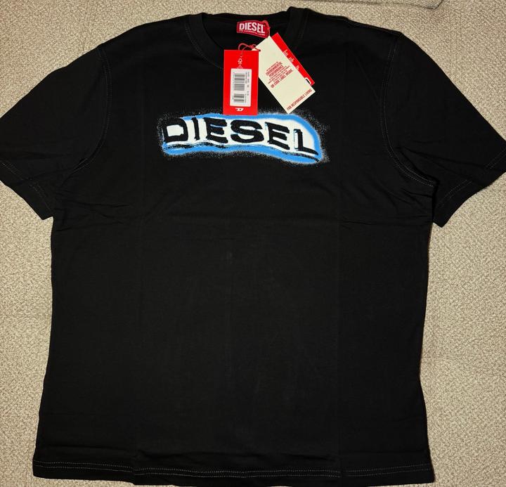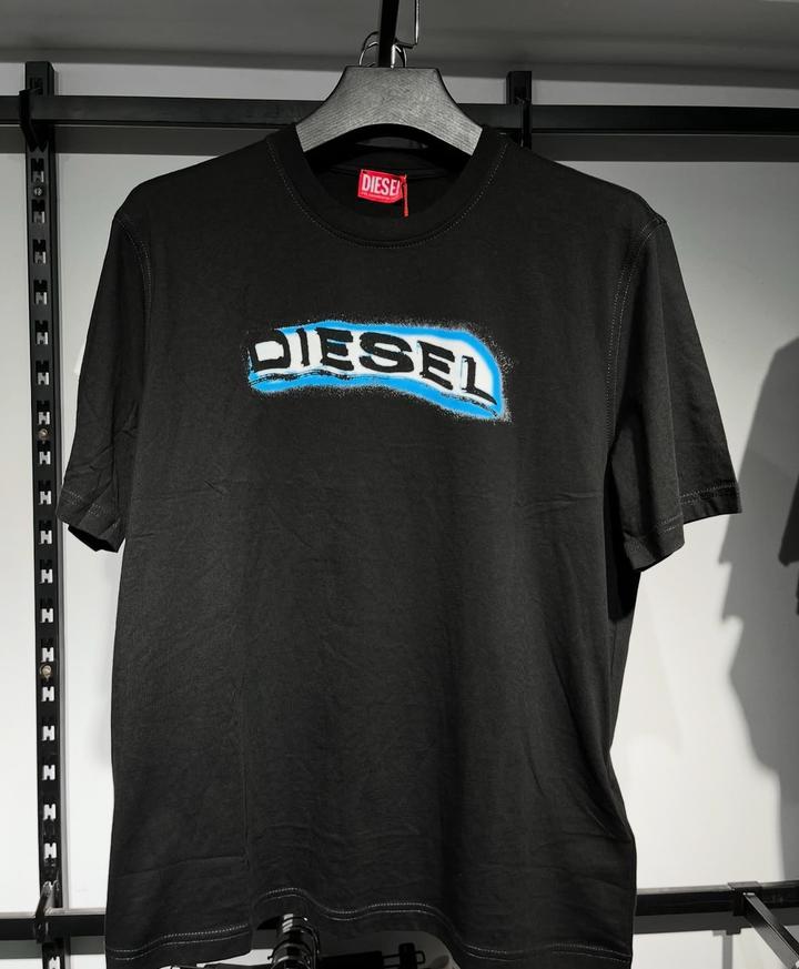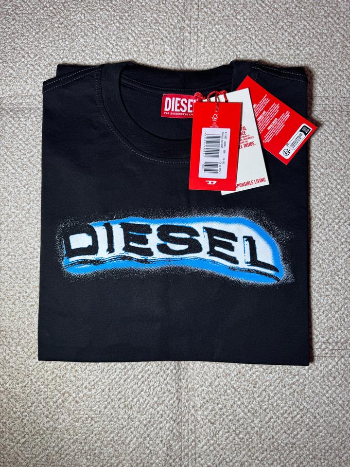 Футболка Diesel оригинал, чёрная, стильный принт Продаётся фирменная футболка от Diesel. Цвет: чёрный Размер: M и L Состояние: новое с бирками Материал: мягкий хлопок, приятная к телу Дизайн: эффектный логотип Diesel с голубым акцентом Артикул: 547246