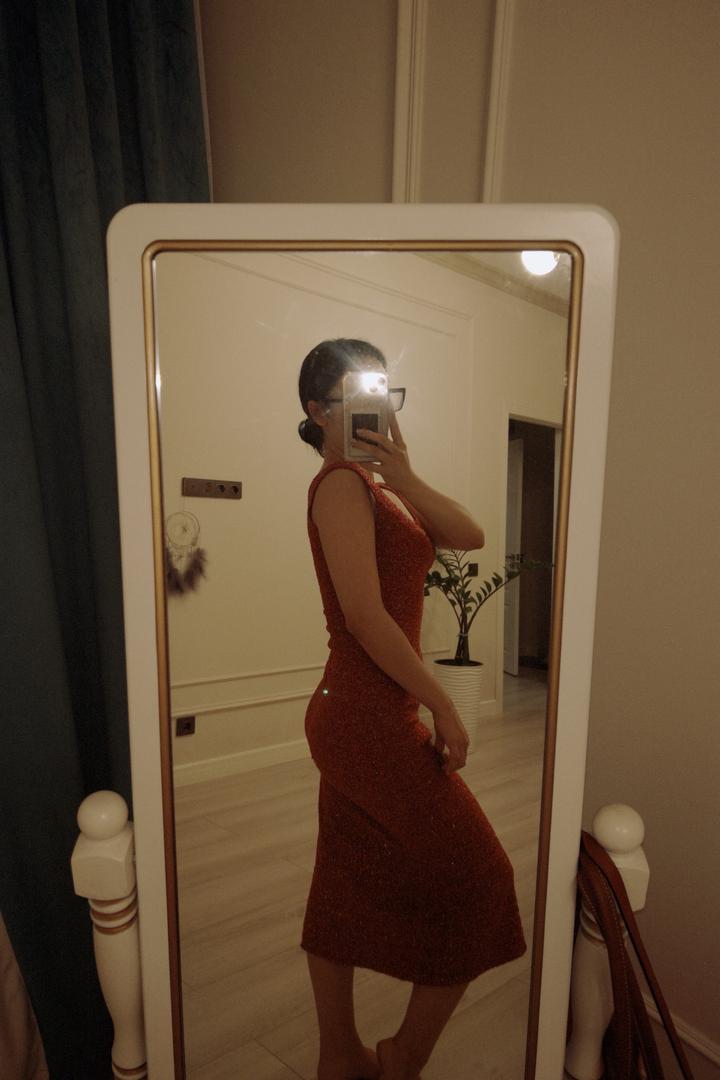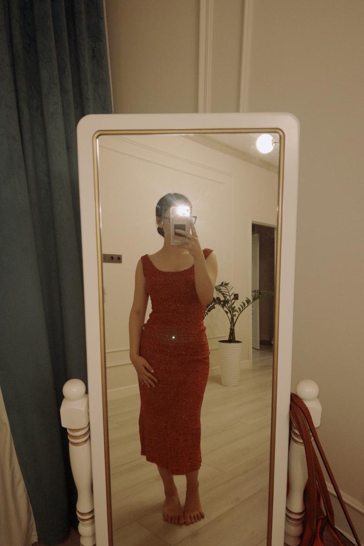 Красное платье с мелким блескомS/M