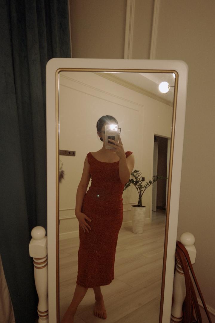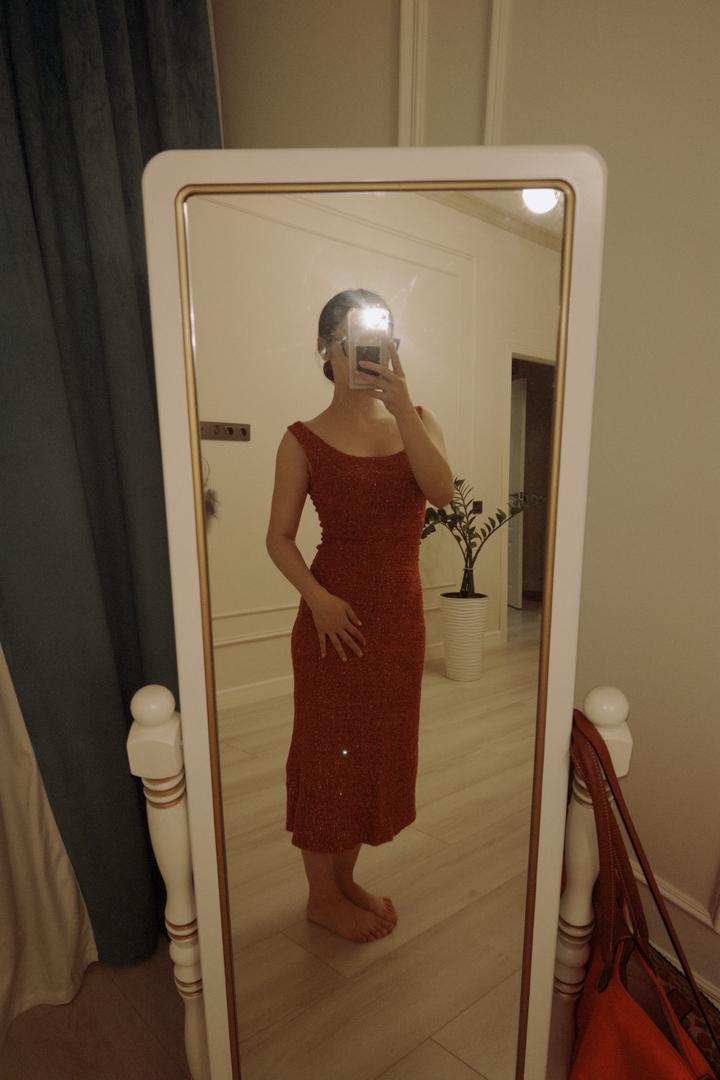 Облегающий силуэт красиво подчёркивает фигуру, длина миди, делает образ утончённым - подойдёт как для вечеринок, так и для особых мероприятий. Ткань с мерцающим эффектом выглядит дорого и эффектно при любом освещении. Удобный крой, приятное к телу. S/M обеим подходит, по фигуре прилегает Артикул: 547491