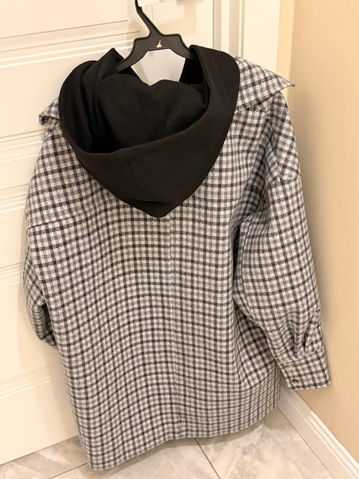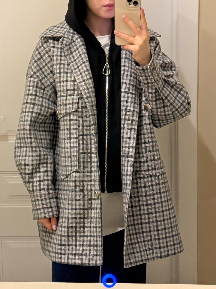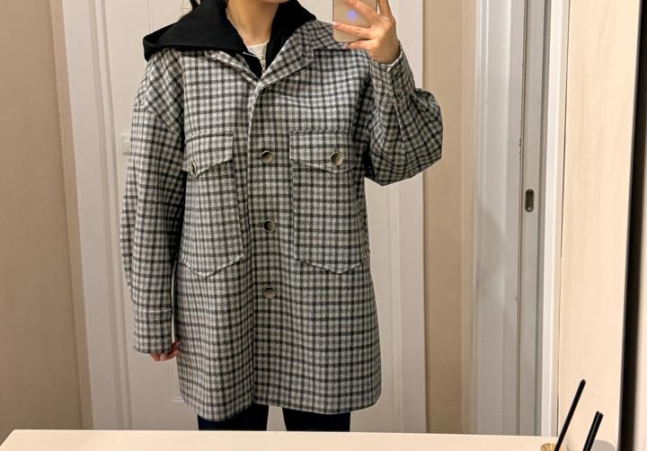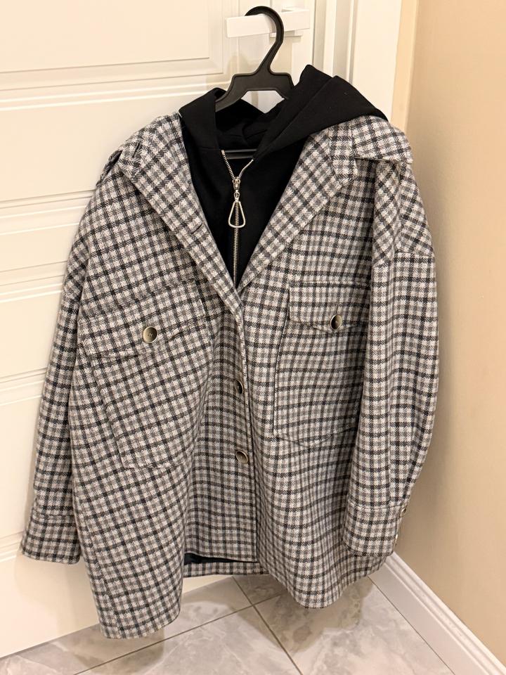 Укорченное пальто в клетку, капюшон съемный, без дефектов, пуговицы и замки на месте. Размер М Артикул: 547496