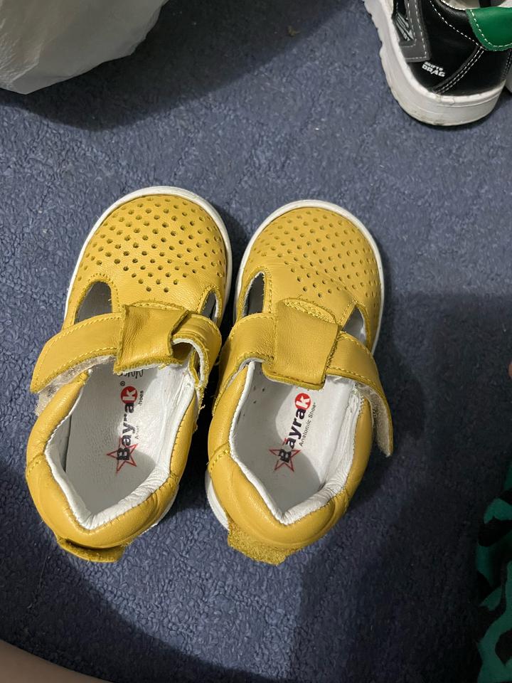• Сандали 21 размер — жёлтые, новые, ни разу не надевали • Кроссовки (изики) 21 размер — надевали пару раз, состояние хорошее за оба 4500 Артикул: 547503