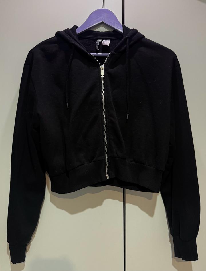 Черная зипка укороченная, в идеальном состоянии, цвет идеально чёрный Размер М, красиво подчеркивает бёдра за счет того что укороченная Артикул: 547576