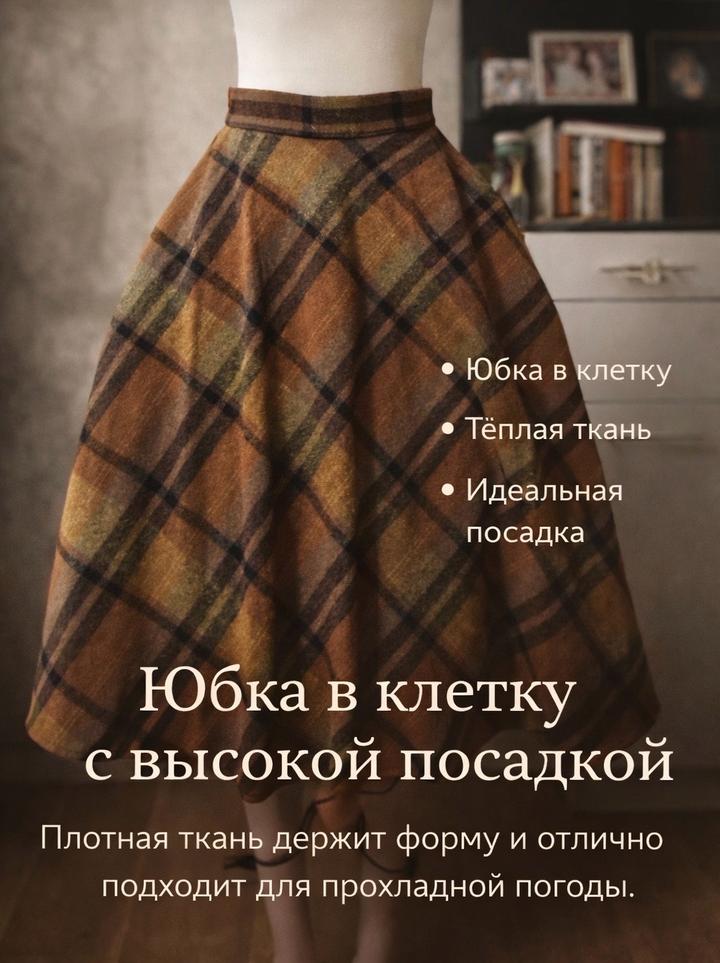 Юбка в клетку с высокой посадкой Стильная и универсальная модель на каждый день. Плотная ткань держит форму и отлично подходит для прохладной погоды. ✔ Высокая талия ✔ Расклешённый силуэт ✔ Трендовый клетчатый принт ✔ Подходит под базовый гардероб Артикул: 547585