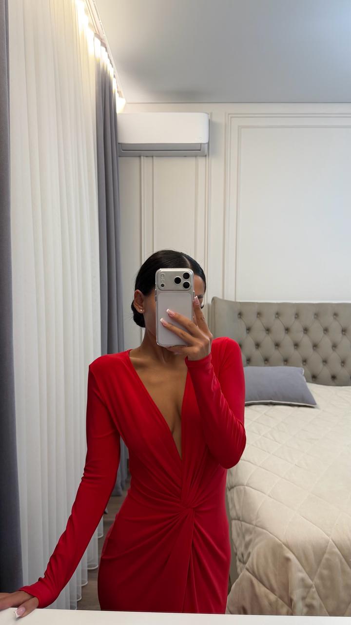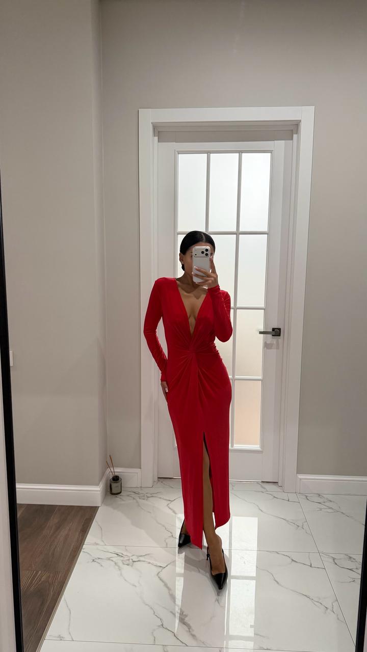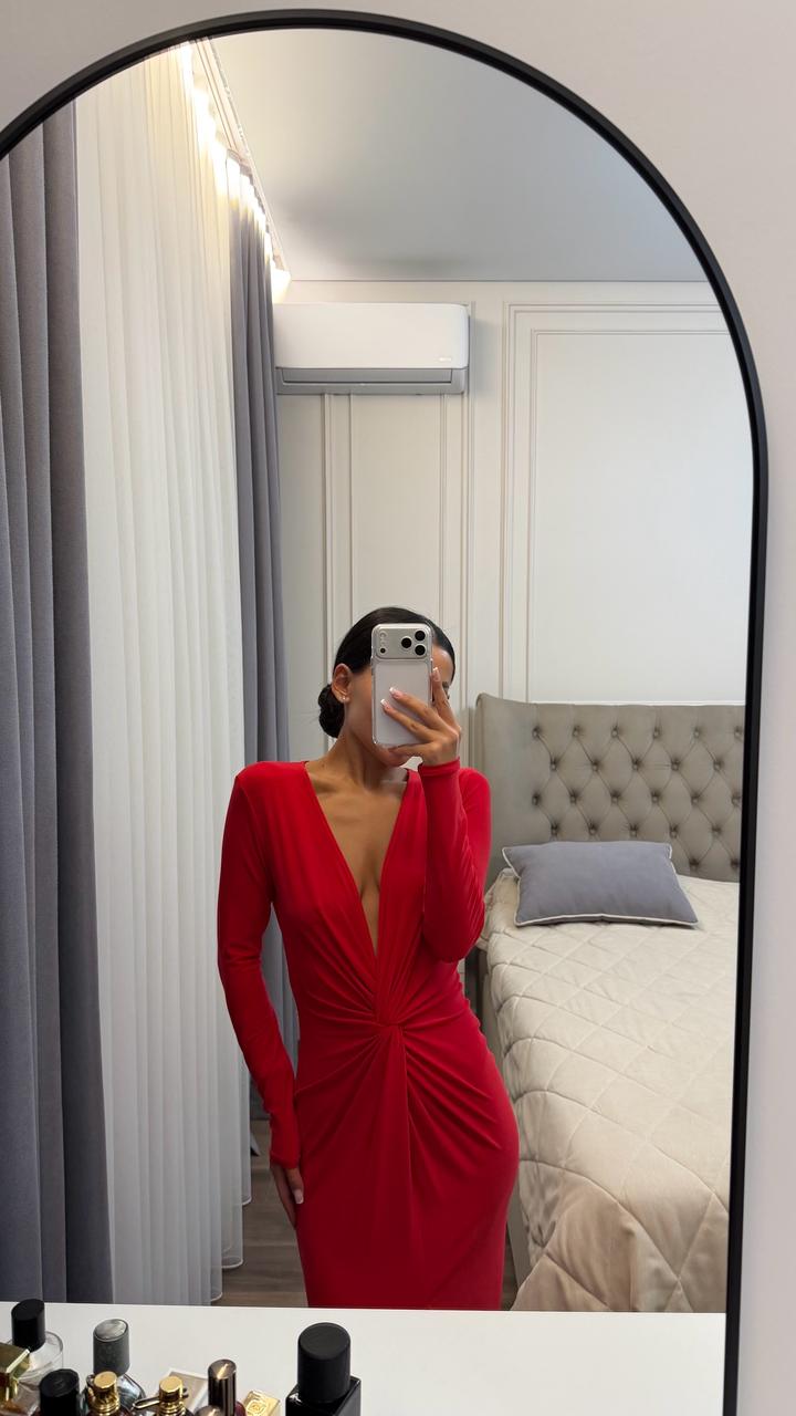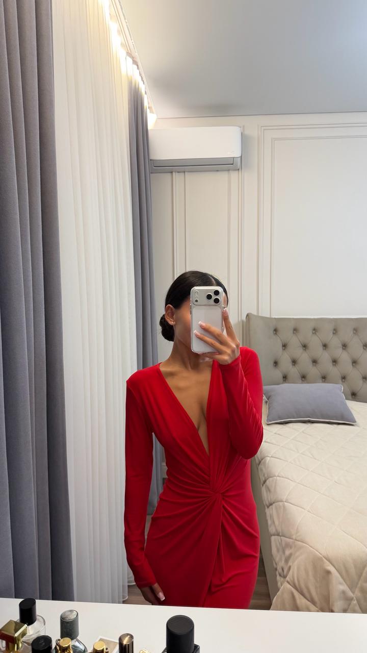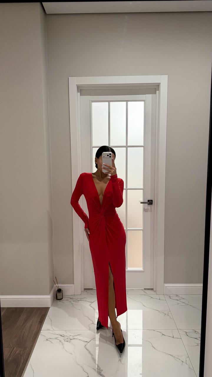 Красное платье из тонкого материала, тянется на размер с, м Одевалось один раз Артикул: 547596