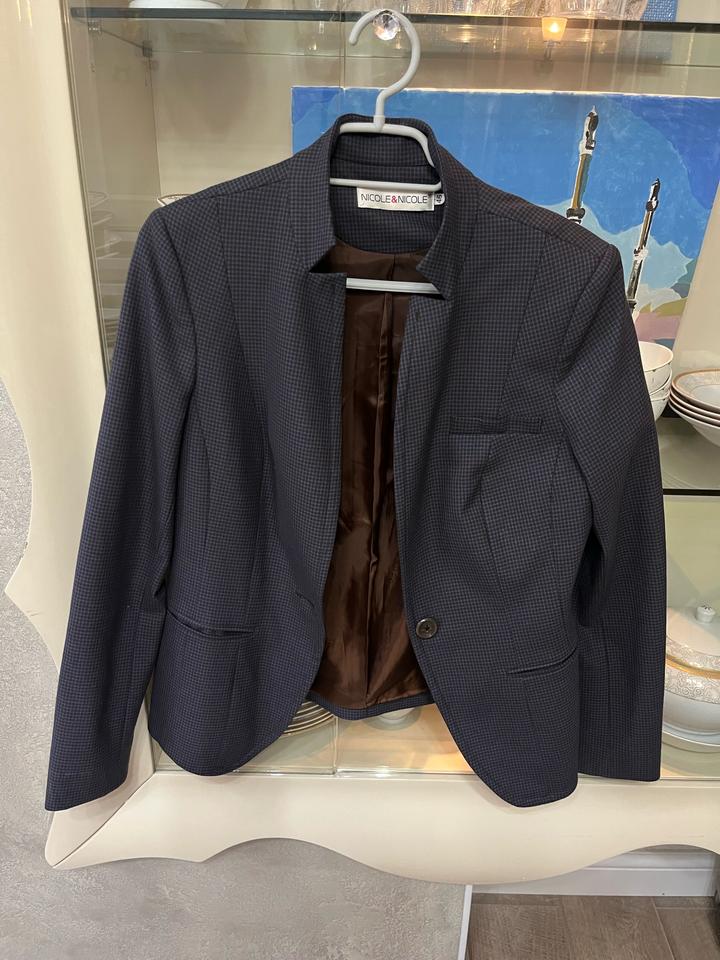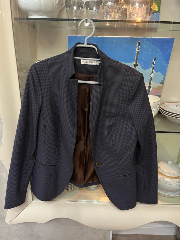 Темно синий пиджак с коричневым подкладом Трендовый воротник Приталенный Хороший очень Размер 46 Можно носить как оверсайз Артикул: 547600