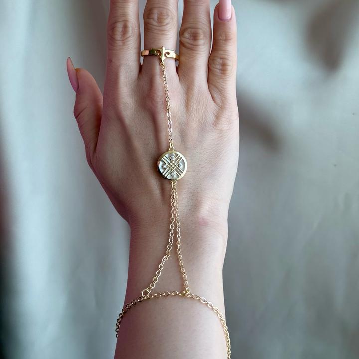 Слейв-браслет Шанырак В этно-стиле Материал латунь покрытие позолота Не чернеет Вставка натуральный перламутр Кольцо регулируемое Браслет на регулируемой застежке Упакован в мешочек пыльник и пакетик🩷 Артикул: 547635