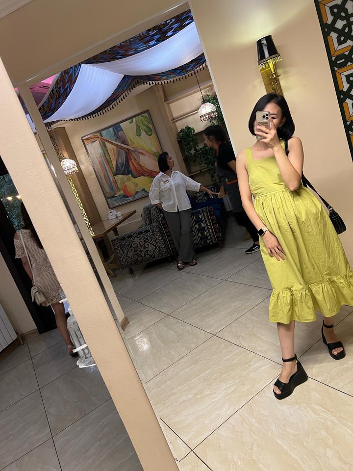 Летнее платье миди с открытой спиной 💛 Стильное и необычное платье в трендовом оливково-жёлтом оттенке — идеально на лето ☀️ • Широкие бретели • Красивая открытая спина с завязками 🎀 • Приталенный верх + свободная юбка • Лёгкая, дышащая ткань • Аккуратный волан снизу Смотрится очень женственно и свежо, отлично на прогулки, отдых и фото 📸 Артикул: 547684