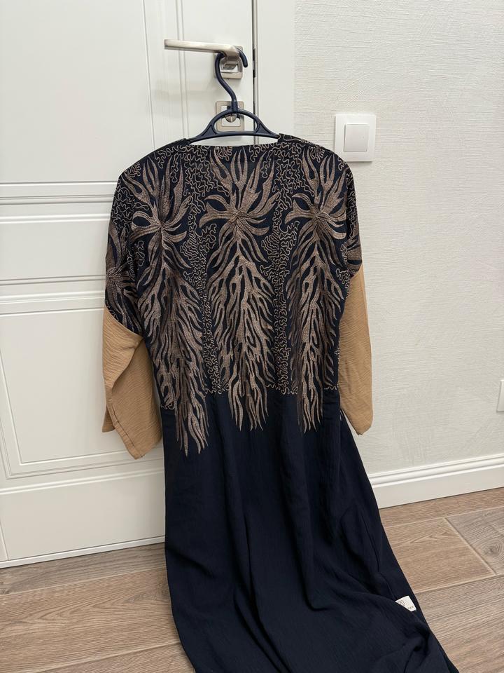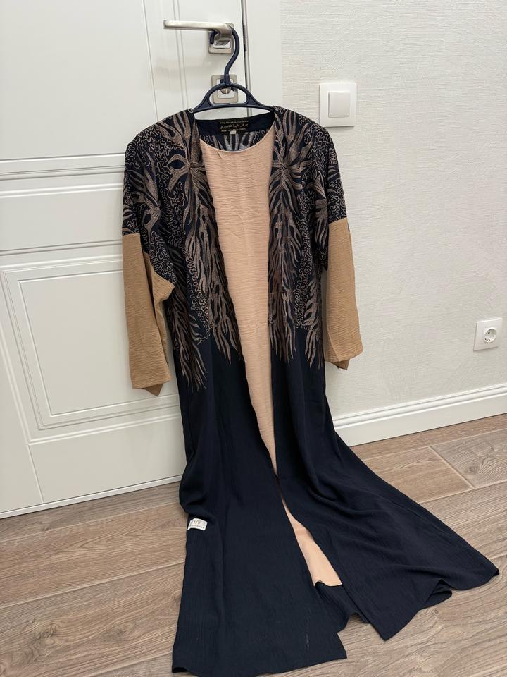 Абайка внутри свое платье с короткими рукавами. Очень красиво смотрится. Одевала 1 раз. Состояние отличное. Покупала в Саудии. На размер XS-S. На рост до 155 ( если хотите макси длину) Мой рост 161, видно щиколотку. Артикул: 547685