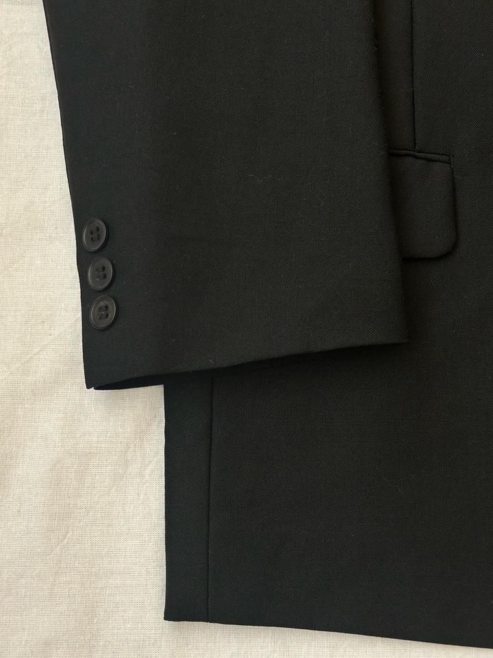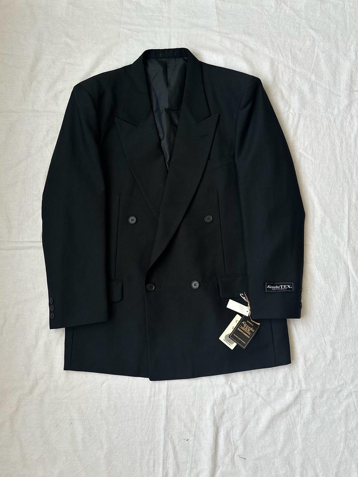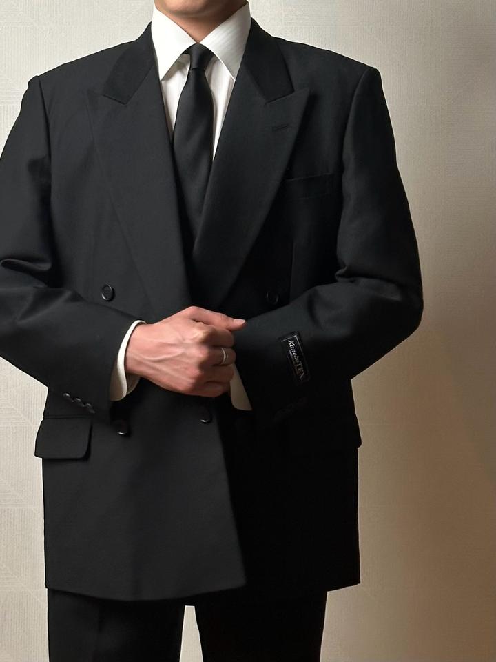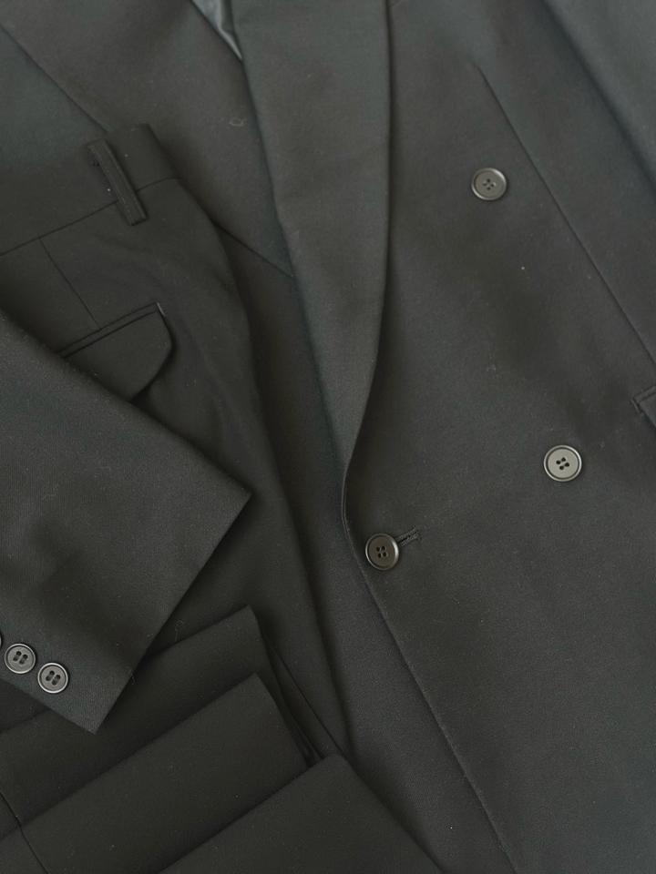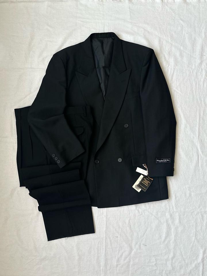 Kanebo TEX | L (175см) Классический двубортный костюм 4х1 в элегантном черном оттенке. Прямой крой, широкие лацканы и миланская петля. Брюки с высокой талией и с боковыми регуляторами. 100% шерсть Плечи 46 Грудь 54 Рукава 62 Длина 77 Талия 72-84 Бедра 106 Посадка 30 Выход 23 Длина 115 Made in Japan 🇯🇵 Состояние новое, с бирками 10/10 Параметры модели: рост 175, размер С-М Артикул: 547715