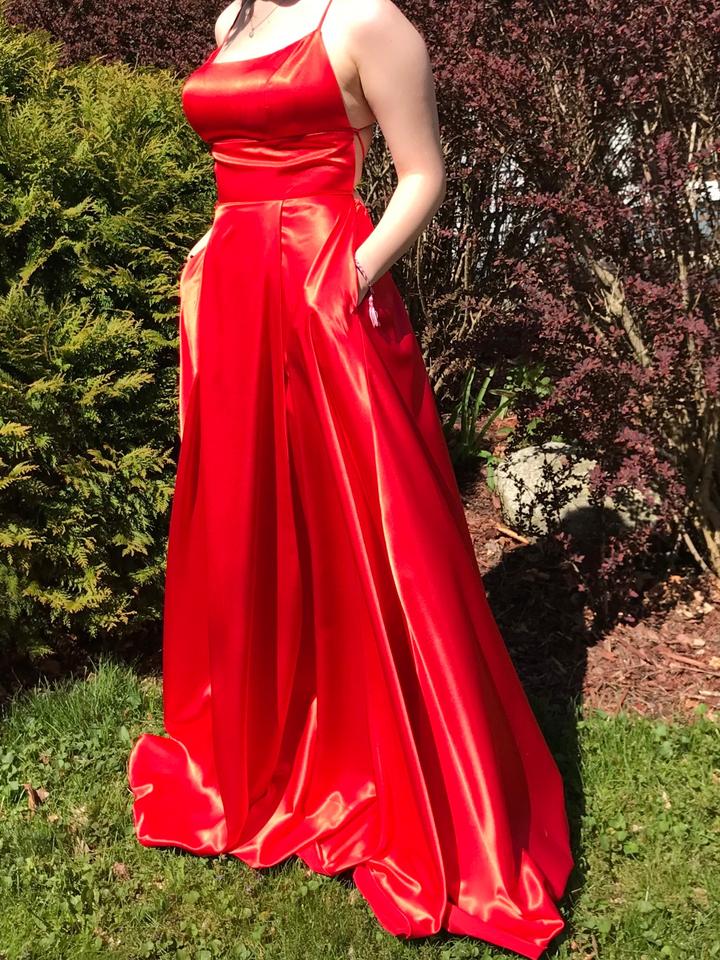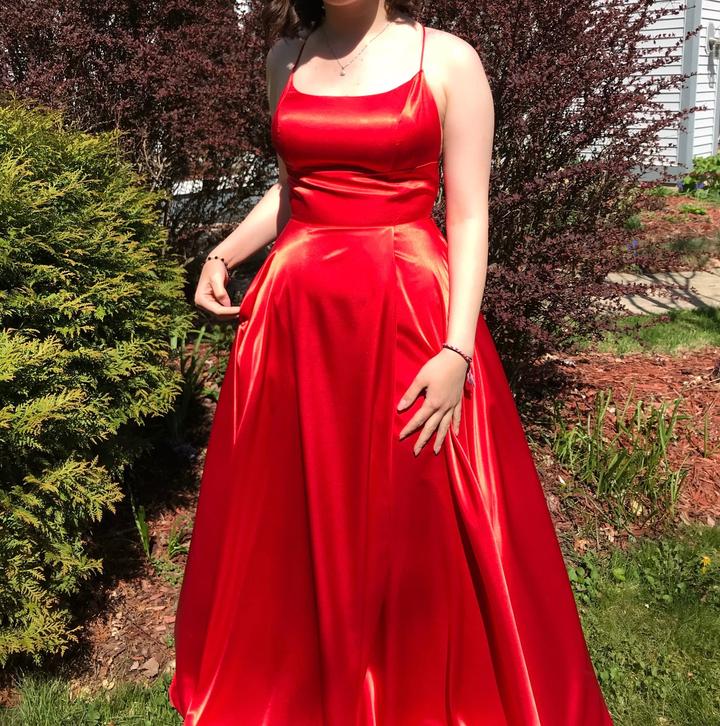 Красное платье размера М, сзади на завязках, на 2-3 размер груди, одевала один раз на выпускной в Америке, есть карманы, что очень удобно :) подкорачивала под свой рост (171см) с каблуками + 6/10см Артикул: 547798