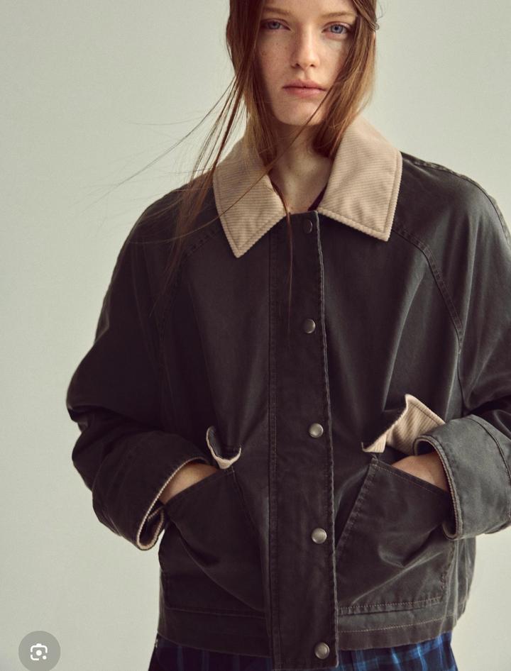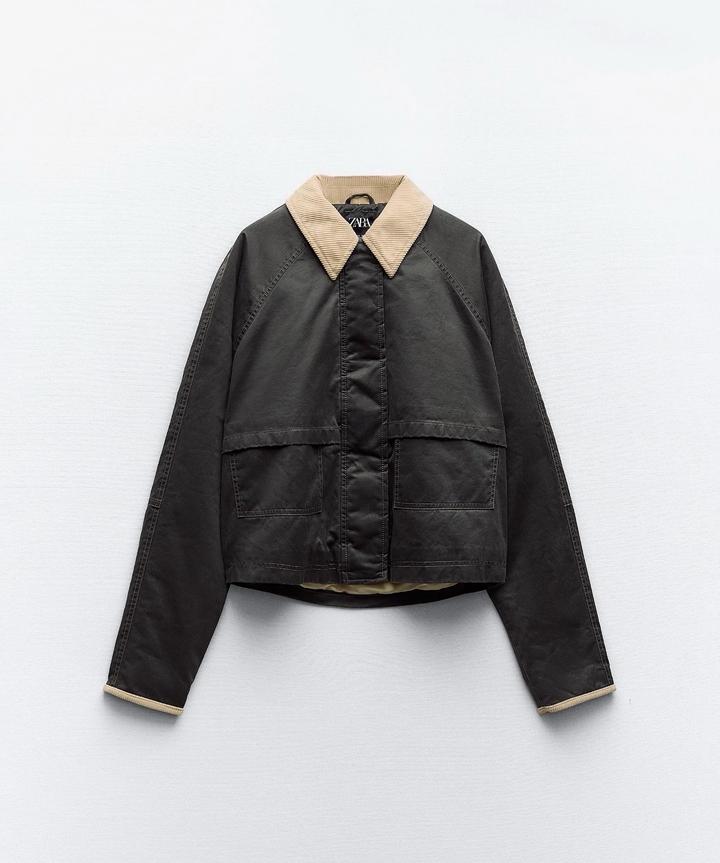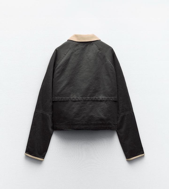Куртка из ткани с вощеным покрытием и контрастными воротником и рукавами от Zara Размер XL, но маломерят на полноценный L Цвет угольный В носке пару раз, состояние новой вещи Артикул: 547822