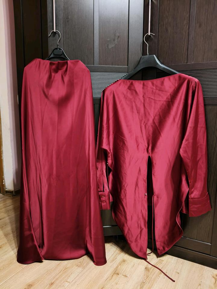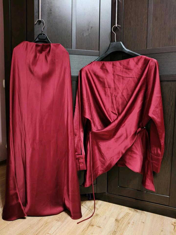 Юбка года Макси длина, мой рост 165 см, но юбку можно и задрать. Размер примерно 44-46. Юбка на резинке по форме как рыбка. Блузка на запах, получается драппировка на животе. Скрывает недостатки. Состояние нового, одела 1 раз в ресторан на свой той, даже не садилась за стол. Покупала за 25 тыс. Цену предлагайте. Цвет Марсала. Артикул: 547931