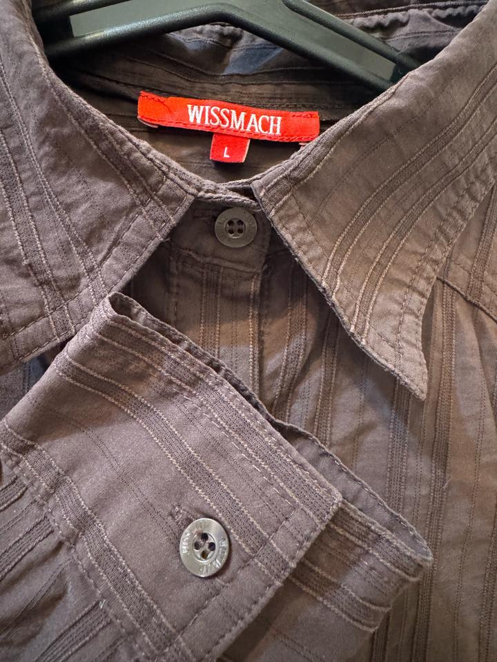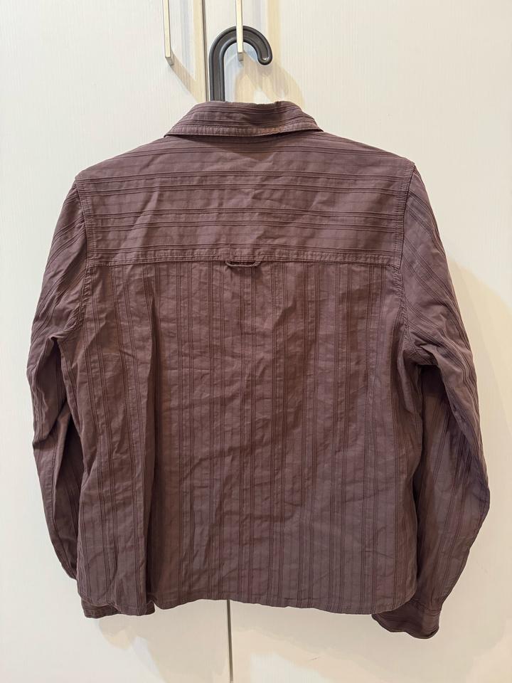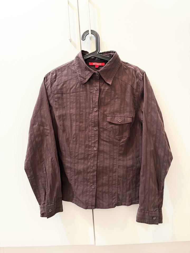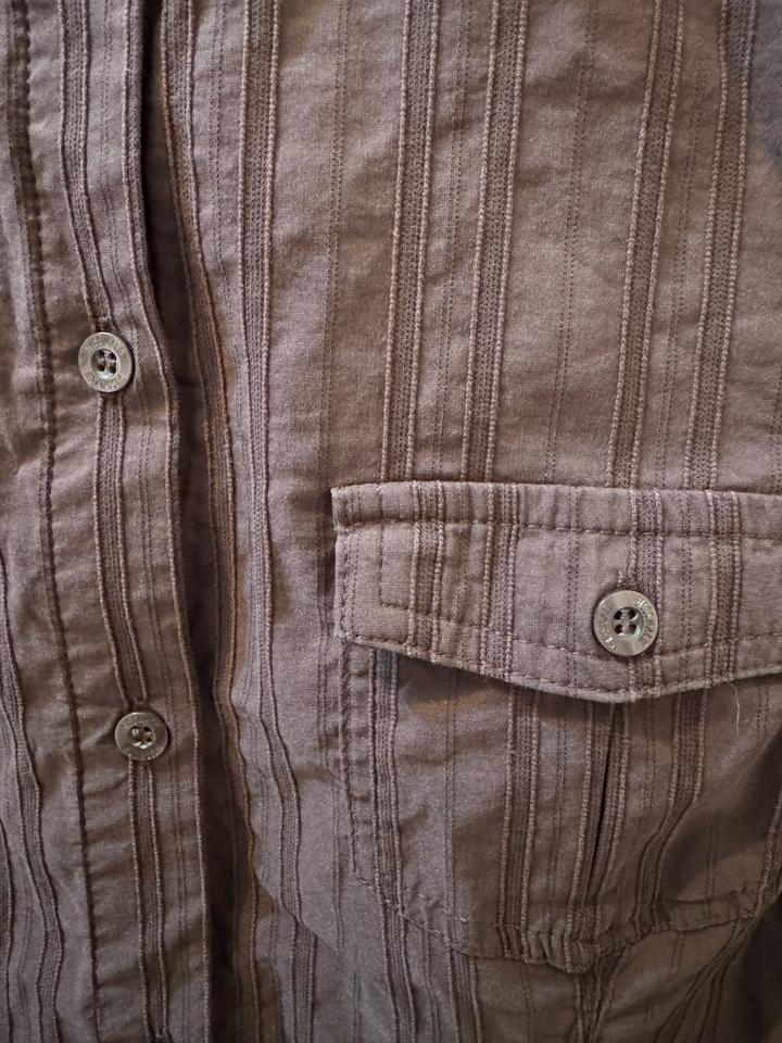 Рубашка немецкого бренда, коричневого цвета, размер L. В хорошем состоянии, без пятен и повреждений. Рубашка приталенная, фактурная, имеет прошитые вертикальные полосы Артикул: 547959