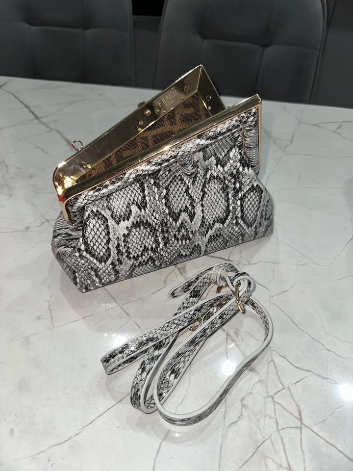 Продам роскошную сумку-клатч в стиле Fendi First (качество 1:1) с трендовым принтом под питона и золотистой фурнитурой. Носила пару раз. В отличном состоянии Артикул: 548011