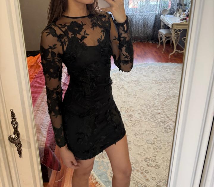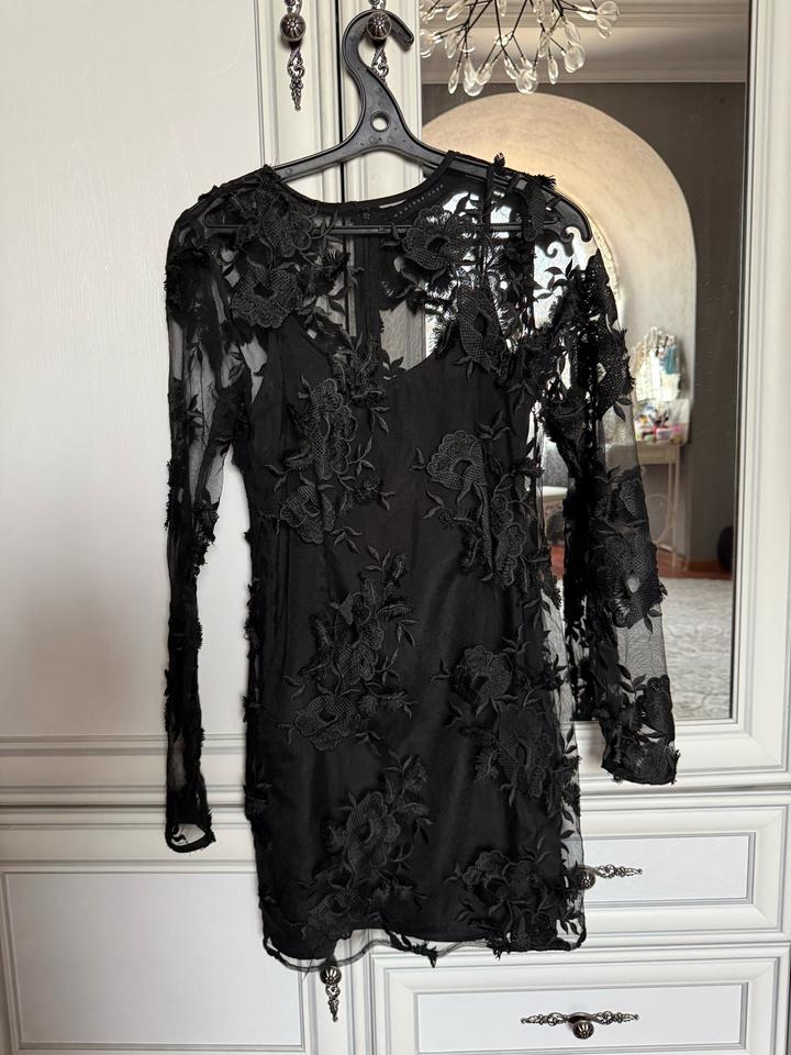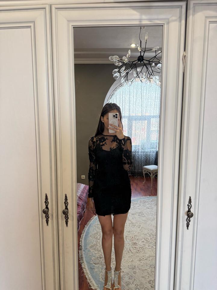 Платье черное кружевное приталенное, мини, на выход Артикул: 548070