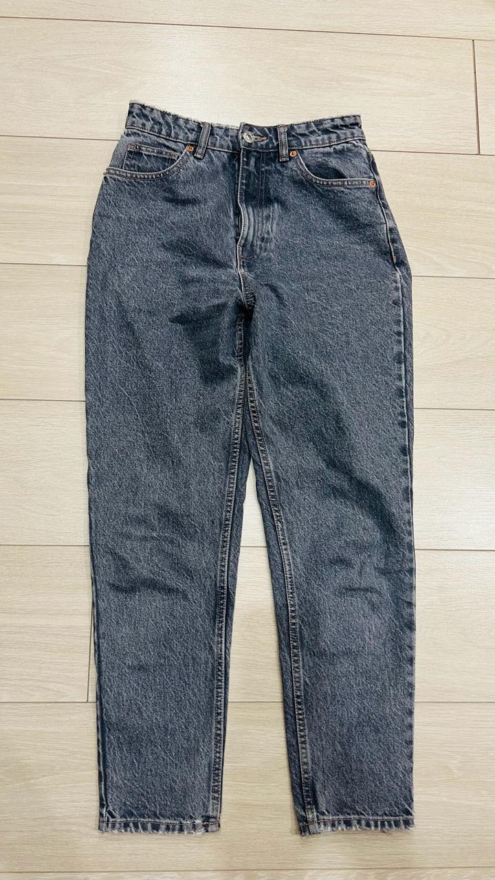 Джинсы серого цвета, размер 36, модель mom Почти новые Артикул: 548087