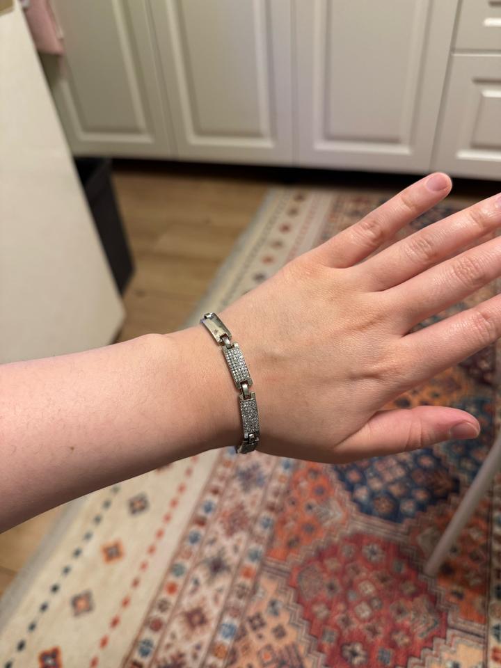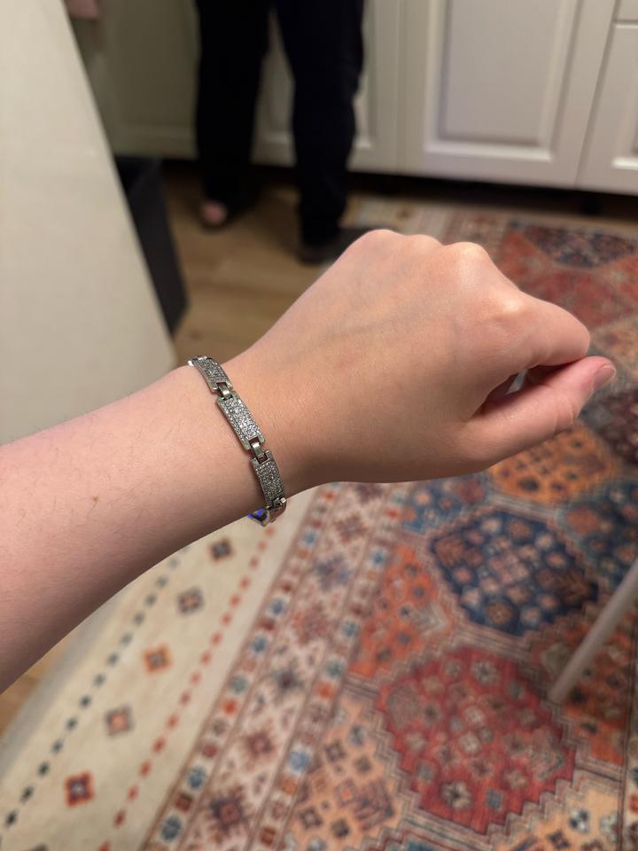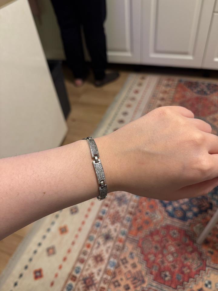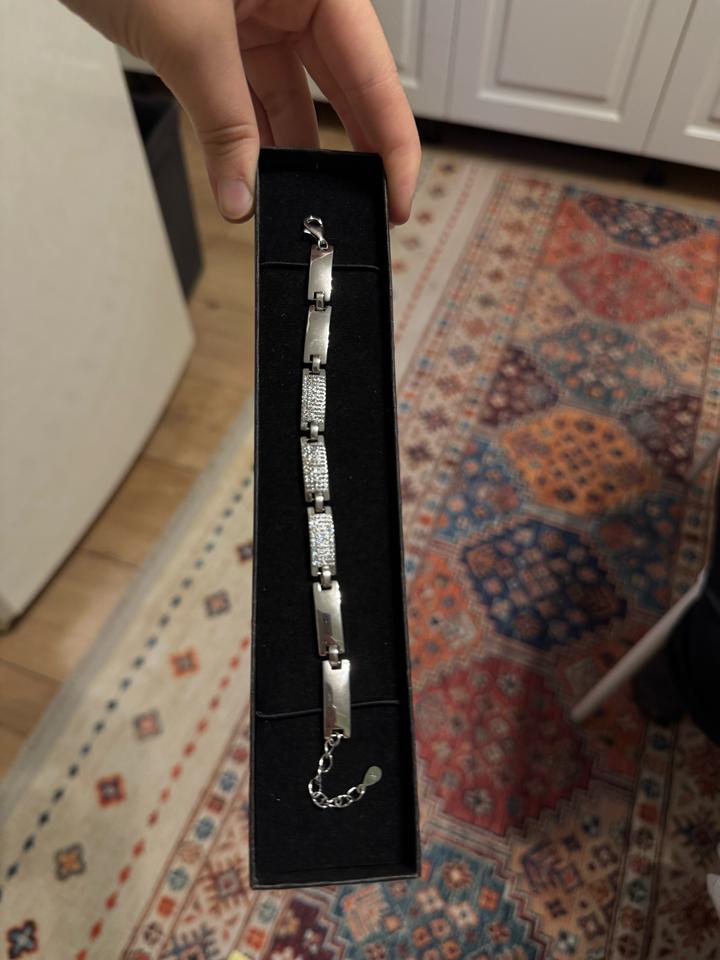 Не носили просто очень долго лежала в коробке . Очень хорошо подойдет с наручными часами. Камни скорее всего фианиты ) Артикул: 548130