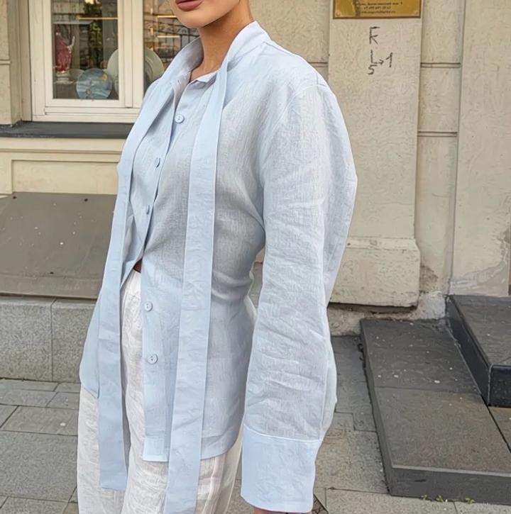 Элегантная и утончённая модель, которая подчеркнёт женственность и создаст лёгкий, дорогой образ 💫 ✨ Нежный голубой оттенок ✨ Свободный, комфортный крой ✨ Эффектные завязки на спине ✨ Универсальный фасон — отлично сочетается с брюками и юбками Идеальный вариант для прогулок, встреч и повседневного стильного образа 🌿 Артикул: 548348