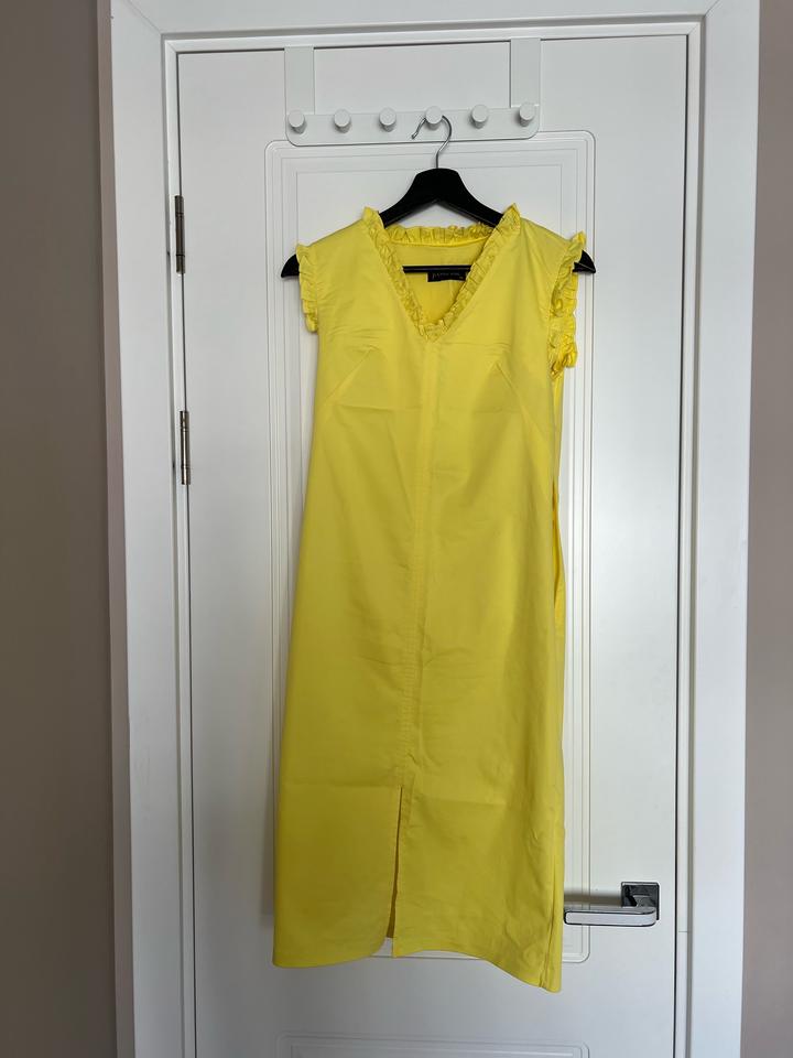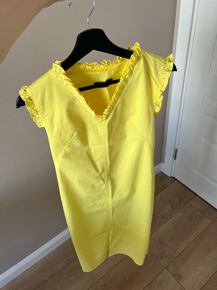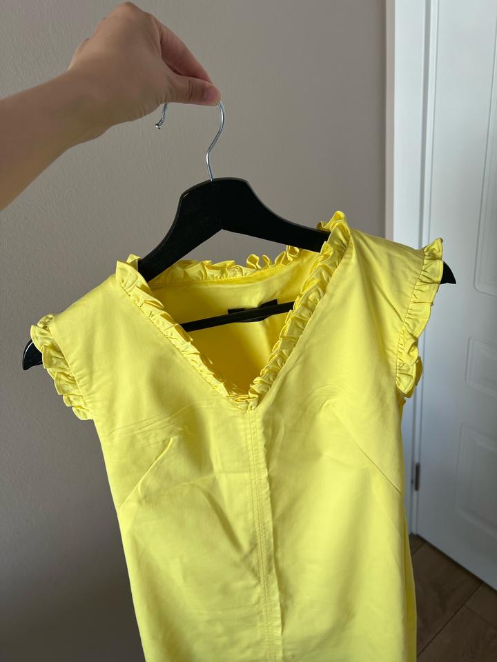 Желтое платье Очень красивый оттенок Покупала в Азия парке за 30к Стало мало ((( Надевала пару раз Сидит красиво по фигуре, прямого кроя, спереди вырез, небольшие воланы у воротника, сбоку длинный замок Прям супер летний, освежающий цвет, +100 к настроению На М по фигуре на S по свободнее сядет, у меня рост 166, мне до серилины колена Артикул: 548550