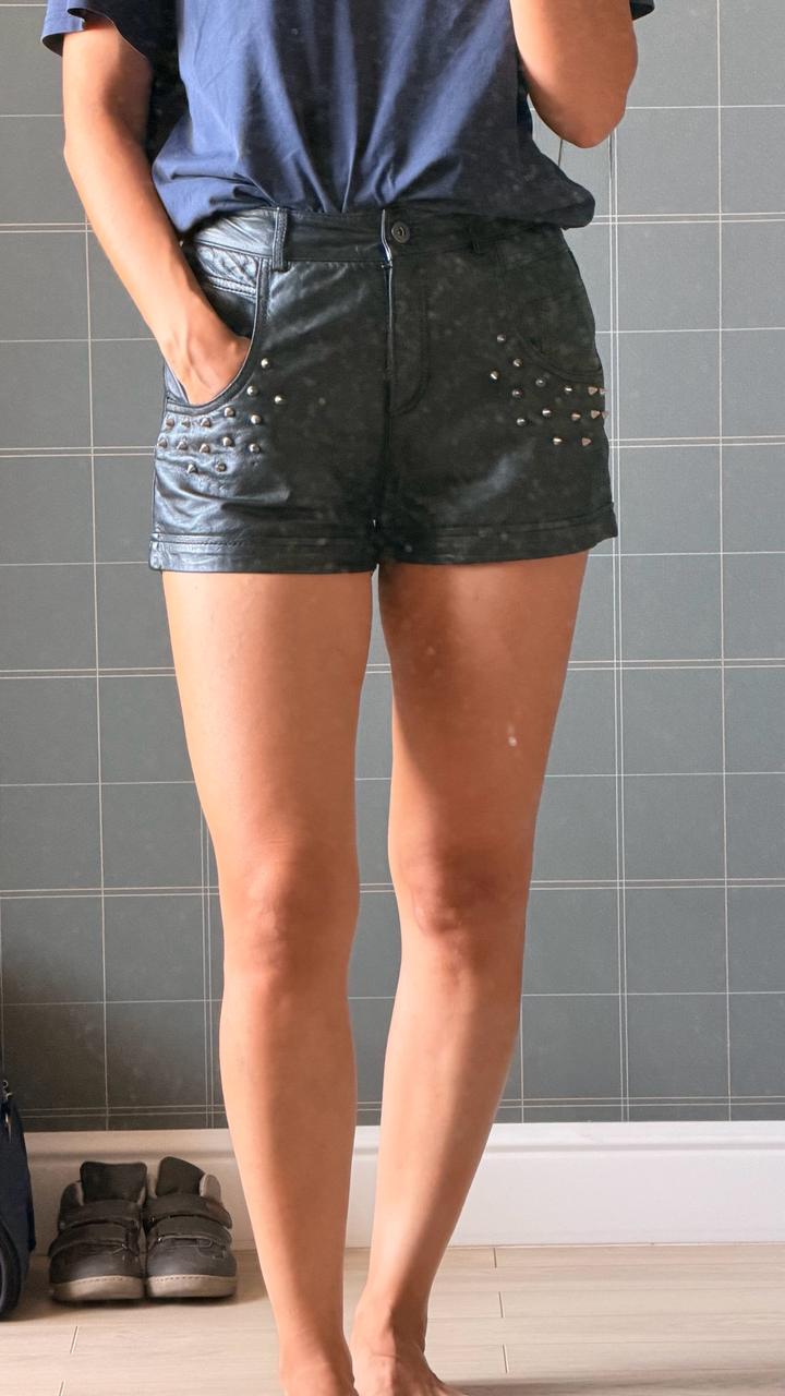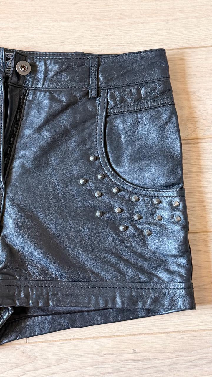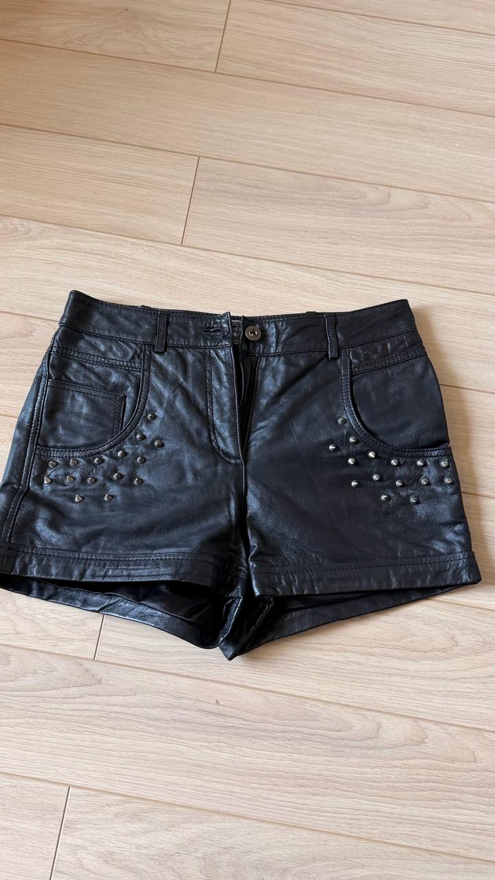 В состоянии новых. На карманах декоративные шипы, не острые. Надевала один раз на тематическую вечеринку. Кожа. Размер 36 евр. Рос 44 ( мой об 94 см) Артикул: 548586