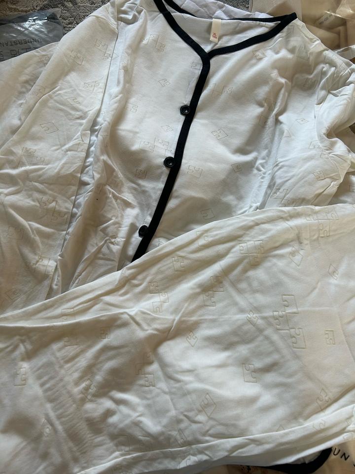 Пижама белого цвета с пазлами.Приятно к телу.Мягкая, стильная и идеальная для сна. Артикул: 548637