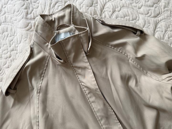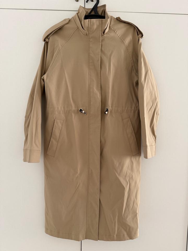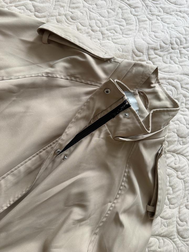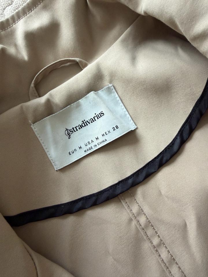Плотный бежевый тренч stradivarius актуальной длины, трендовый воротник стойка, погоны на плечах, на замке и дополнительно есть кнопки, впереди два кармана и кулиска, в идеальном состоянии. На сейчас отлично подойдет и на летние прохладные вечера. Артикул: 548671