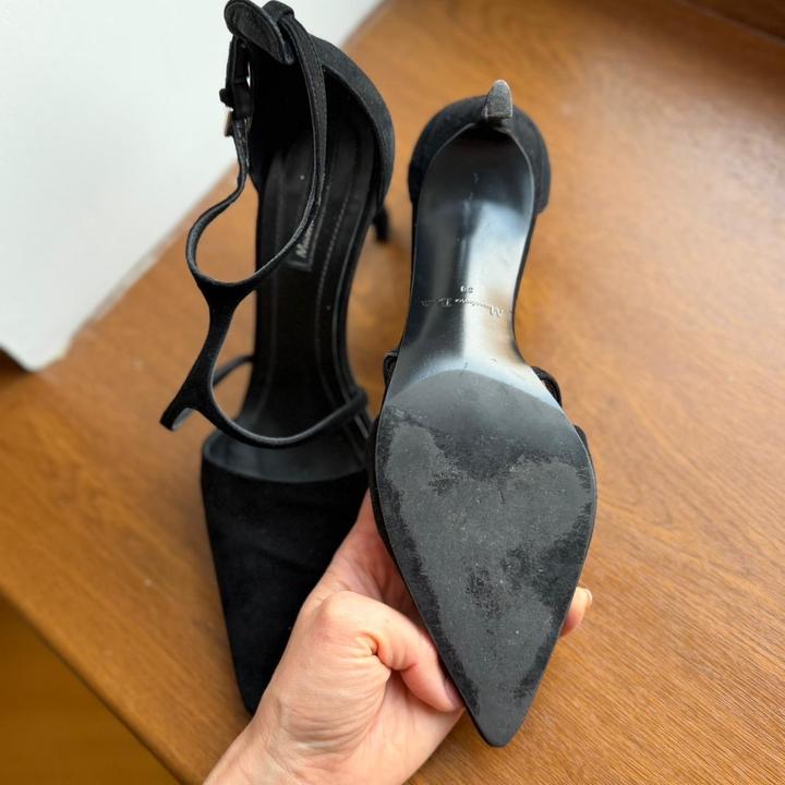 Замшевые massimo dutti, в хорошем состоянии, очень красиво сидят на ноге, надевались 3 раза, на каблуке есть небольшой дефект, но его не видно. Размер 38, каблук примерно 9 см Артикул: 548736