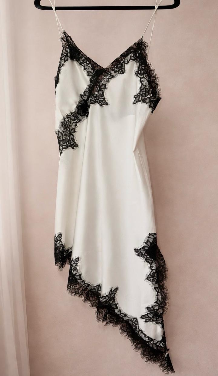 Кружевное ассиметричное платье комбинация - топS/M