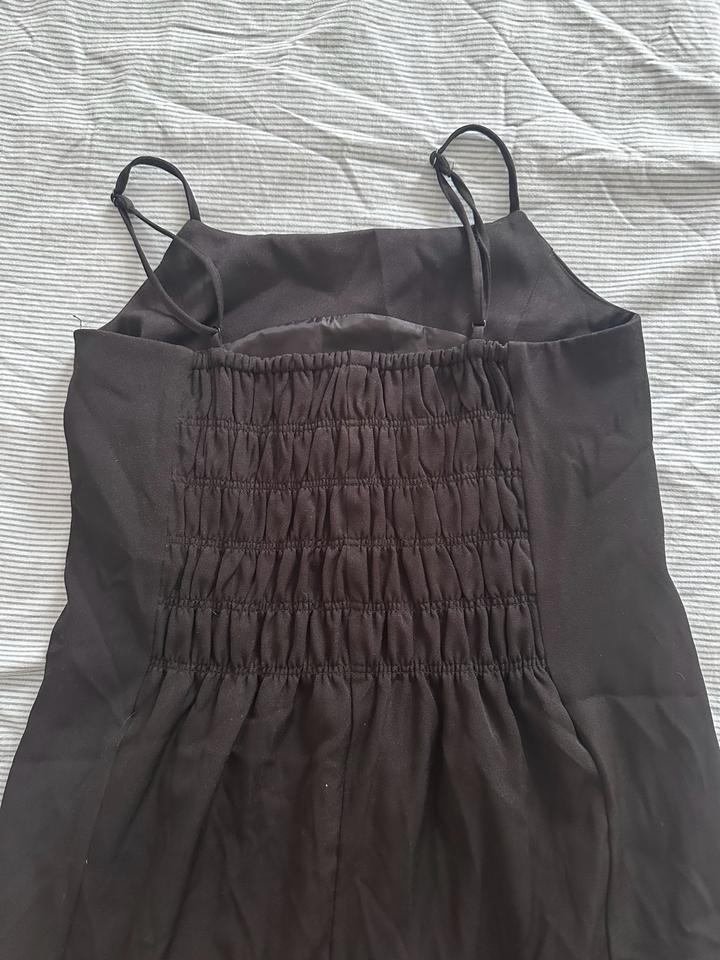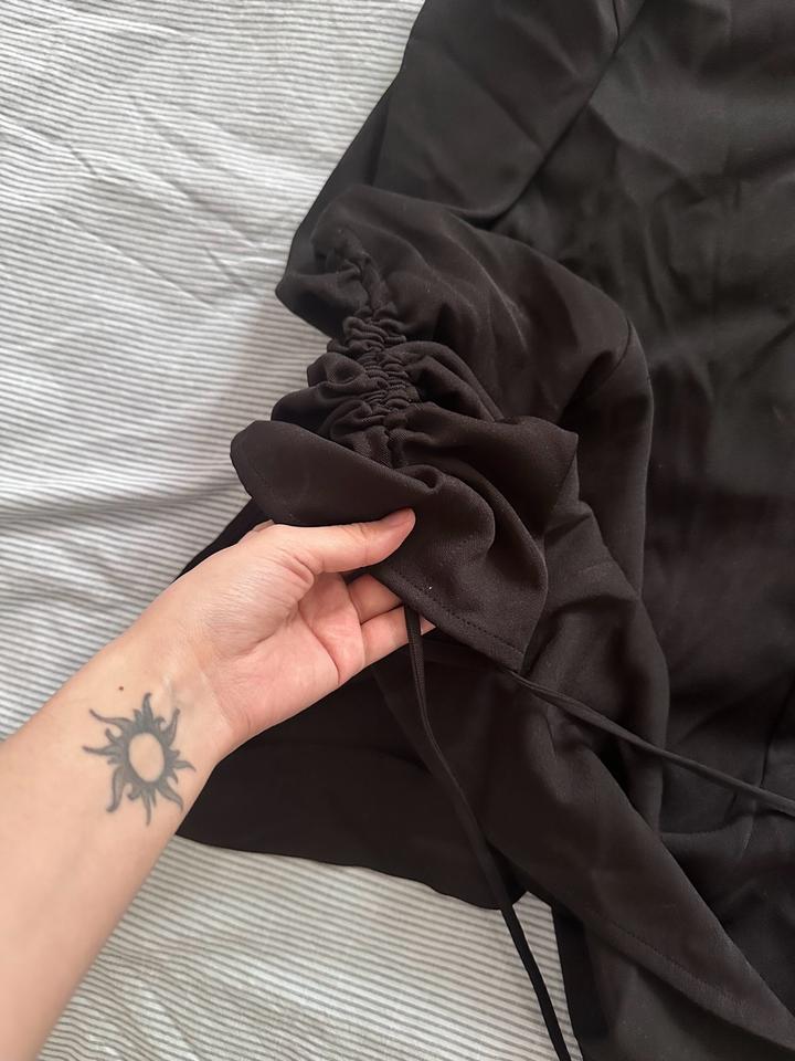 Черное платье от японского бренда one after another nice claup. На подоле платья имеются ленты с двух сторон, чтобы затягивать и укорачивать. Так же две ленточки на лямках, их можно убирать. Размер: M, материал: полиэстер. Артикул: 548745