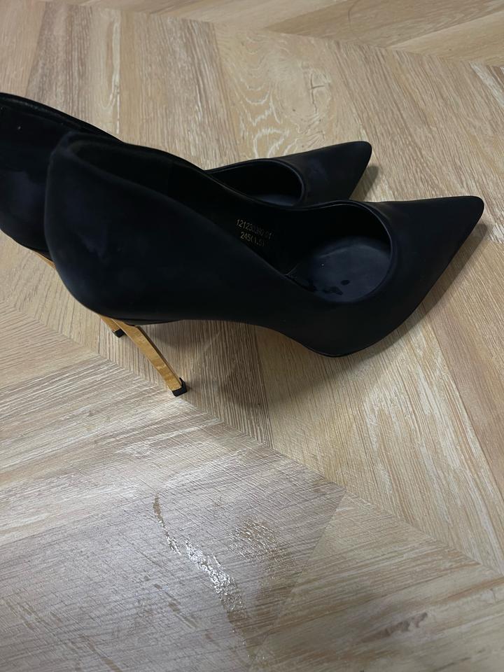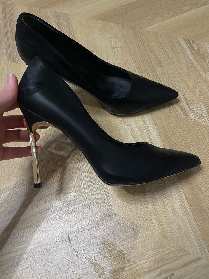 Черные туфли с золотистой подошвой. Стильная и аккуратная модель, которая красиво смотрится и подходит к разным образам. Туфли удобные, в хорошем состоянии, выглядят элегантно и современно. Артикул: 548811