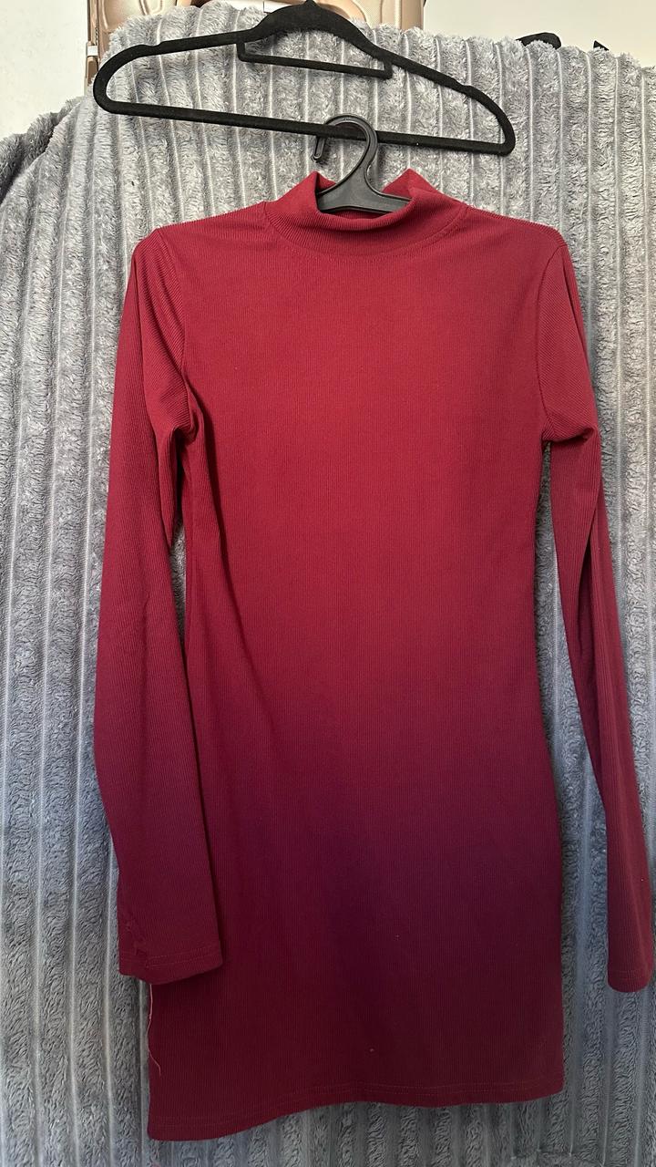 Бордовое теплое мини платье с длинный и рукавами . Надевала 1 раз на мероприятие, состояние очень хорошее . Размер М Артикул: 548878