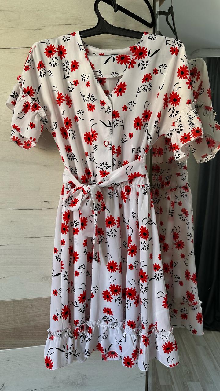 Летнее белое платье с красными цветочками Артикул: 548898
