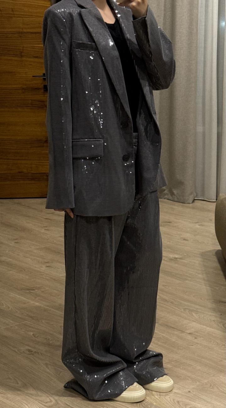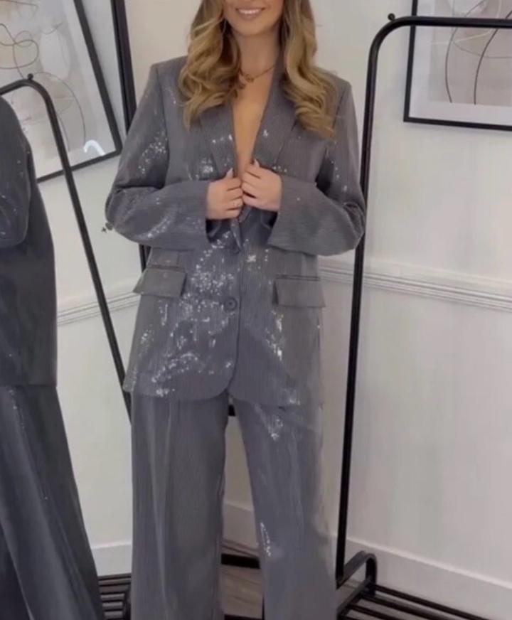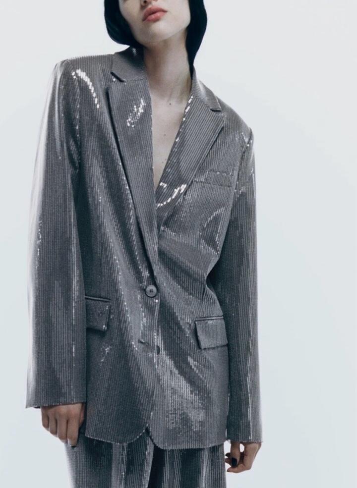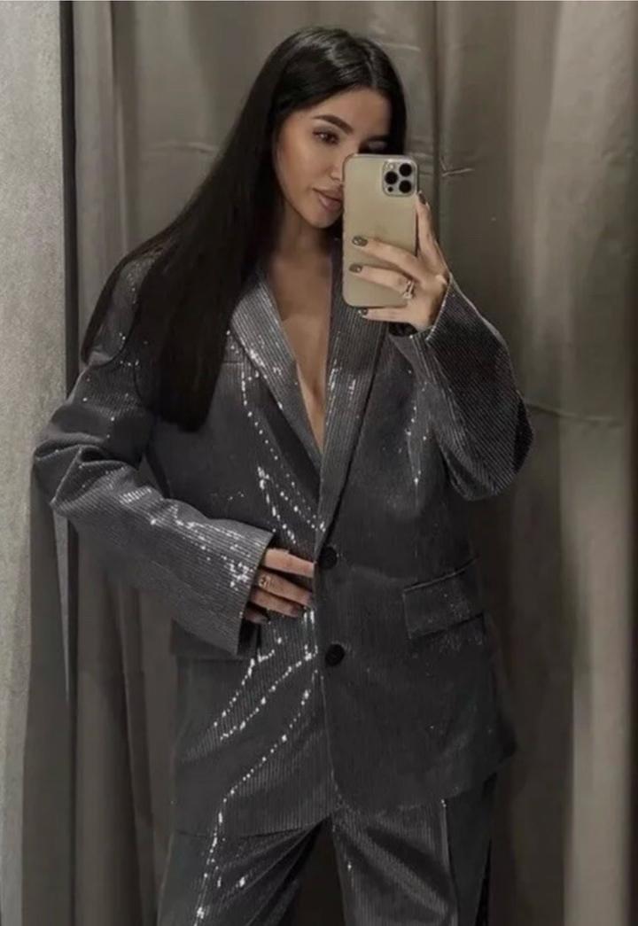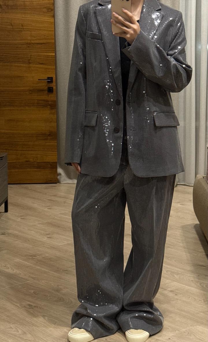 Комплект Zara, брюки и пиджак с пайетками. Абсолютно новые, брюки с биркой, пиджак без бирки приехал. Дополнительно прикрепила фотографии с интернета. Готовый образ на мероприятие, также можно стилизовать отдельно с другими позициями. Артикул: 549001