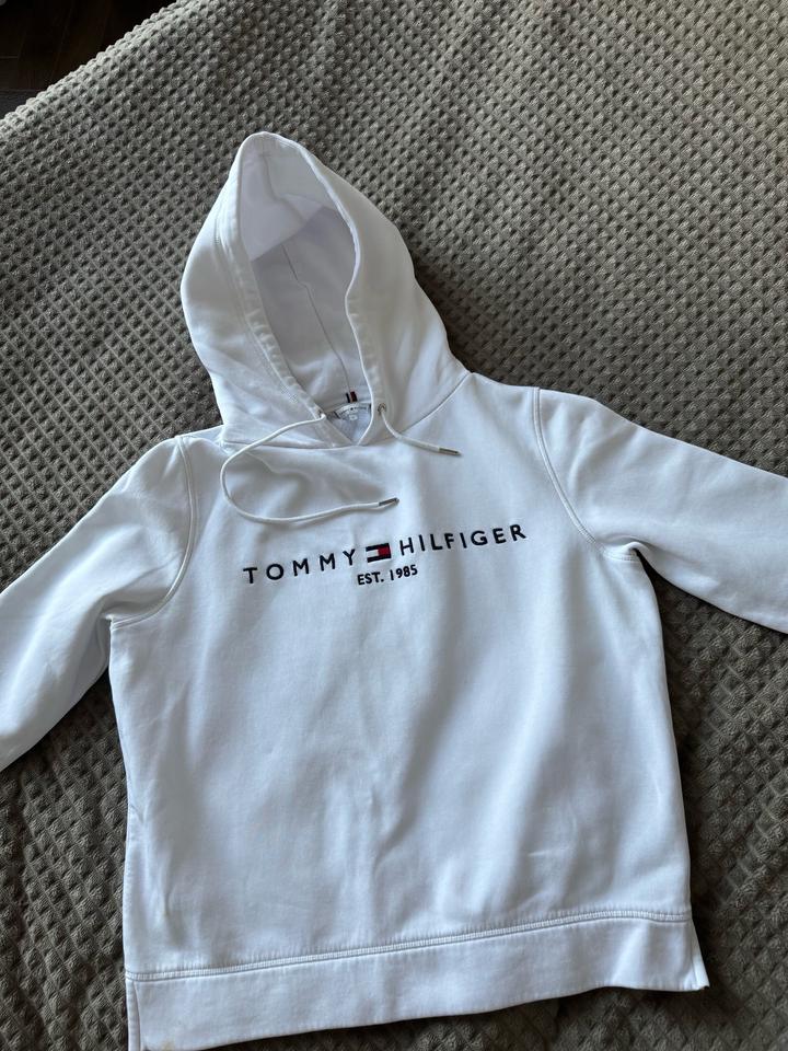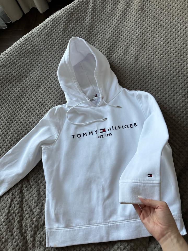 Продам толстовку белого цвета на флисе Timmy Hilfiger оригинал, есть небольшое пятнышко на плече. Размер М Артикул: 549053