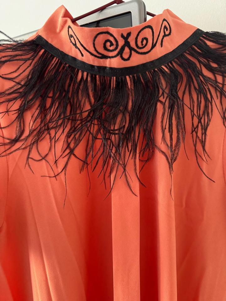 Платье свободного кроя с орнаментами ручной работы. Хорошо подойдет беременным, не обтягивает. Размер S. Цвет оранжево-персиковый. Состояние хорошее. Артикул: 549080