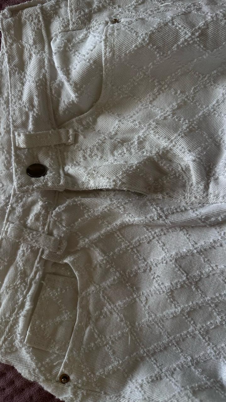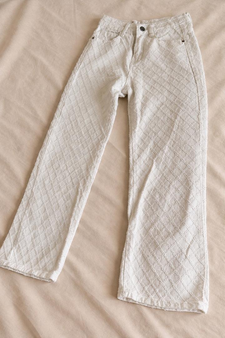 Стильные и нежные брюки белого (ближе к молочному оттенку) с красивой текстурой (ромбовидный узор). Смотрятся очень аккуратно и дорого, отлично подойдут как на каждый день, так и на выход. Носили пару раз. Артикул: 549088