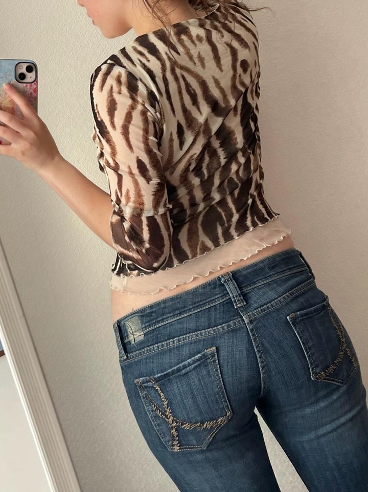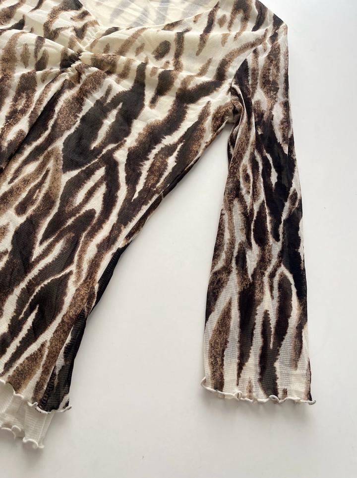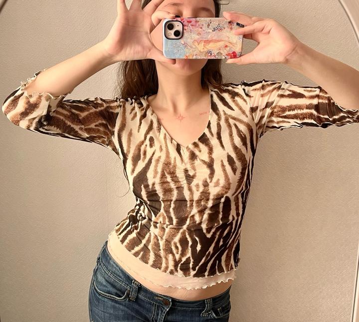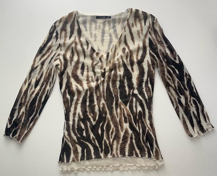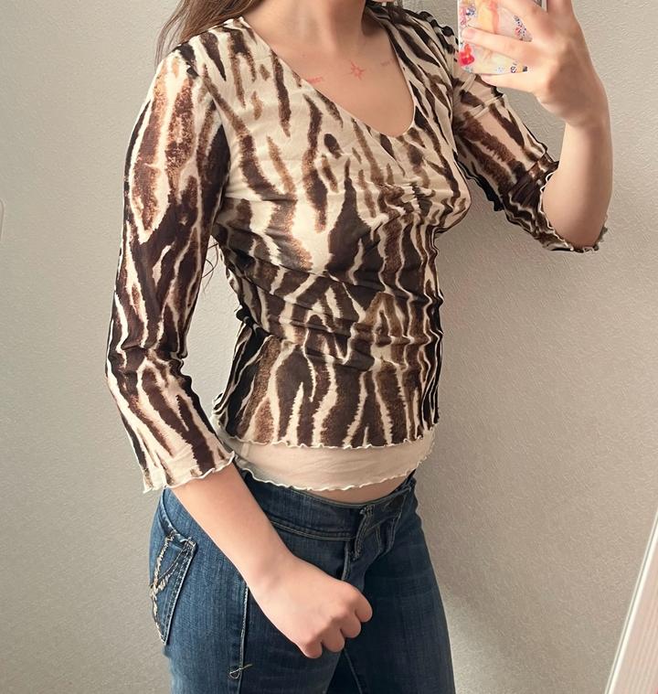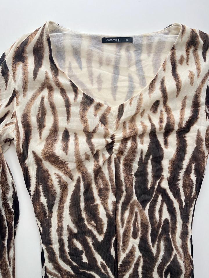 Tiger-inspired mesh топ с V-образным вырезом 🐅 Бренд: Comma Размер: 36 (S–M) Состояние: 10/10, без дефектов Артикул: 549198