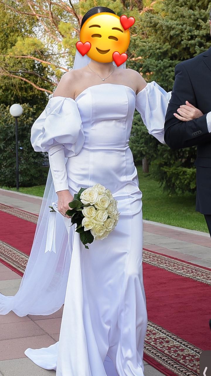 Продам свадебное платье, сшила на заказ по своим меркам Размер хс-с Рост 169-170 см Материал: атлас Имеются рукава Платье надевалось 1 раз, после хим чистки Артикул: 549206