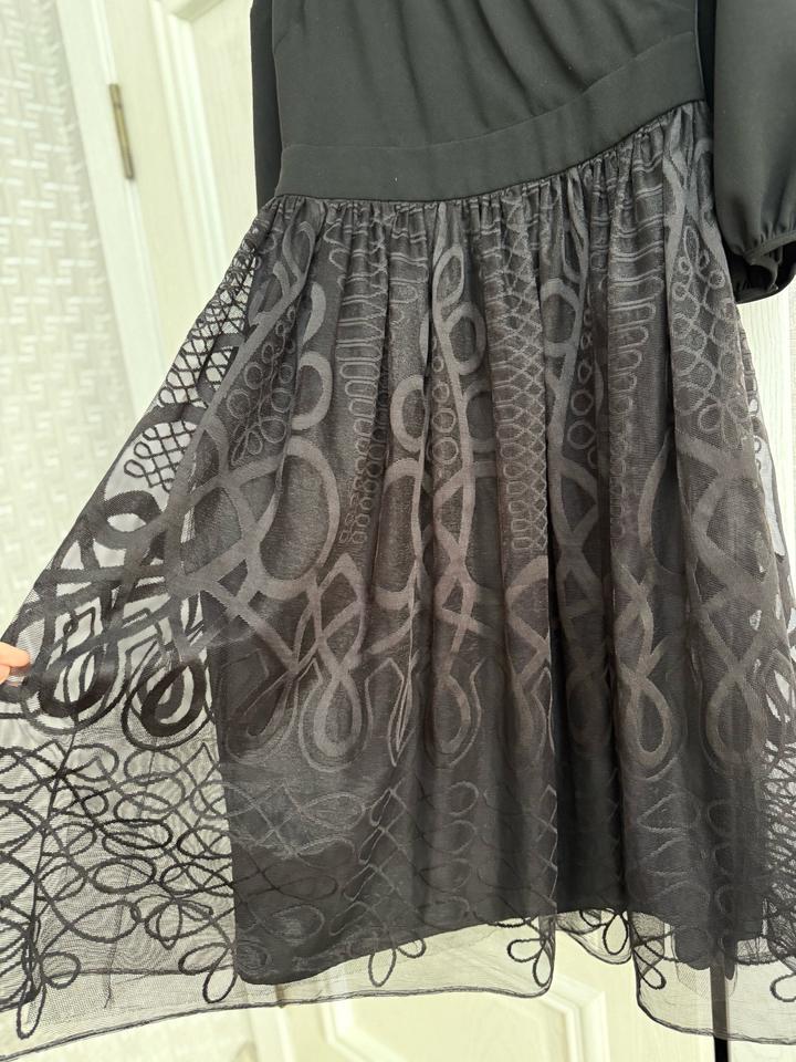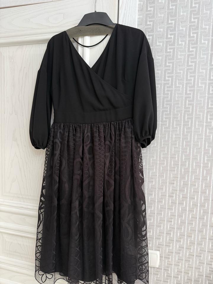 Черное платье на вечер kameya, верх на запах, юбка из нежного гипюра, очень красиво сидит, длина миди, размер 40(М) Артикул: 549228